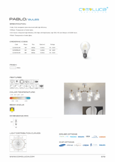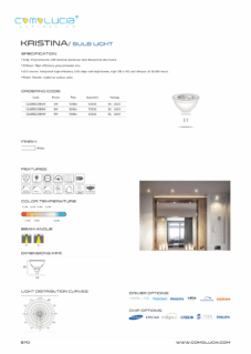 Body: Fully transparent glass structured with high efficiency. Diffuser: Transparent or frosted glass. LED Source: Integrated high-efficiency LED chips with high lumen, high CRI (>90) and lifespan of 50,000 hours. Finish: Transparent or frosted glass.