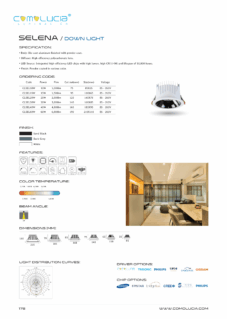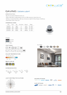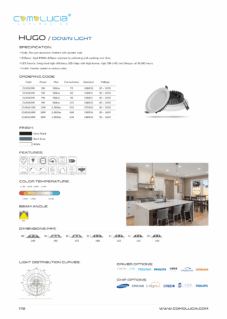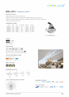 Body: Die-cast aluminum finished with powder coat. Diffuser: High efficiency anodized aluminum reflector with High-transparency tempered glass cover. LED Source: Integrated high-efficiency LED chips with high lumen, high CRI (>90) and lifespan of 50,000 hours. Finish: Powder coated in various color.
