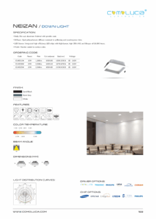 Body: Die-cast aluminum finished with powder coat. Diffuser: Diffuser: High efficiency anodized aluminum reflector with High-transparency tempered glass. LED Source: Integrated high-efficiency LED chips with high lumen, high CRI (>90) and lifespan of 50,000 hours. Finish: Powder coated in various color.