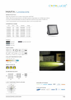 Body: Die-cast aluminum with a corrosion-resistant powder-coated finish. Diffuser: High efficiency polycarbonate lens with High-transparency tempered glass cover and high impact resistance. LED Source: Integrated high-efficiency LED chips with high lumen, high CRI (>90) and lifespan of 50,000 hours. Finish: Corrosion protection and UV-resistant powder coating or marine coat with IP66 Sealed.