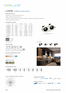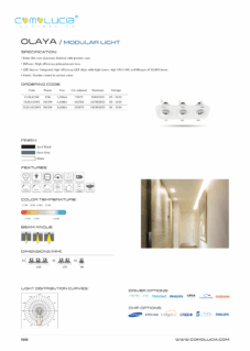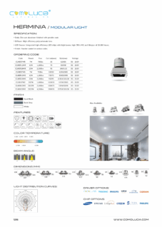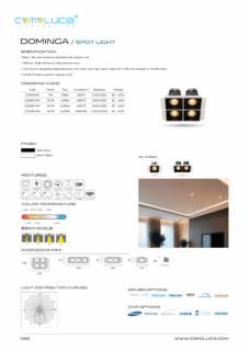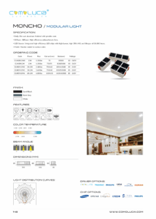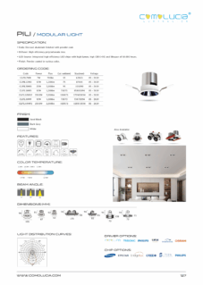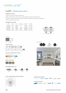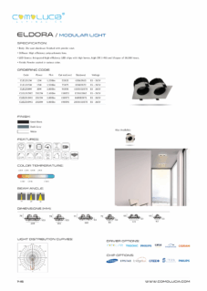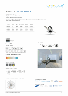 Body: Die-cast aluminum finished with powder coat. High efficiency anodized aluminum reflector with High-transparency tempered glass cover. LED Source: Integrated high-efficiency LED chips with high lumen, high CRI (>90) and lifespan of 50,000 hours. Finish: Powder coated in various color. Finish: Powder coated in various color.