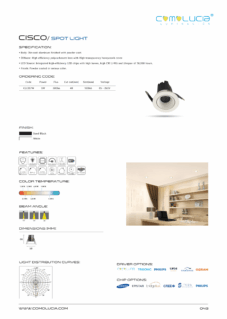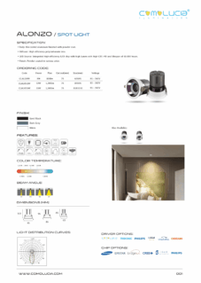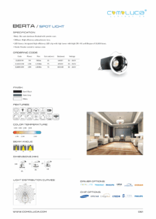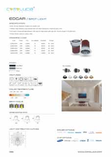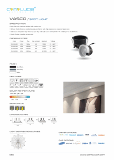 Body: Die-cast aluminum finished with powder-coat. Diffuser: High efficiency anodized aluminum reflector with High-transparency tempered glass cover. LED Source: Integrated high-efficiency LED chip with high lumen with high CRI >90 and lifespan of 50,000 hours. Finish: Powder coated in various color.