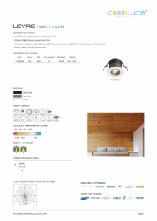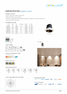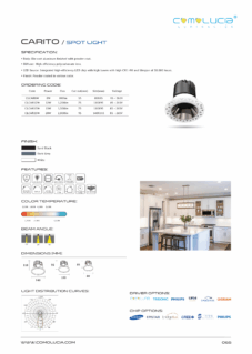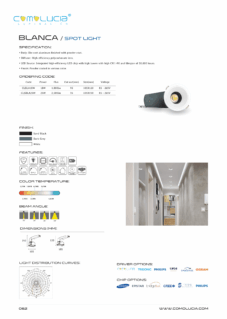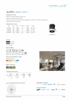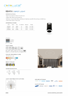Body: Die-cast aluminum finished with powder coat. Diffuser: High efficiency anodized aluminum reflector with High-transparency tempered glass cover. LED Source: Integrated high-efficiency LED chip with high lumen with high CRI >90 and lifespan of 50,000 hours. Finish: Powder coated in various color.