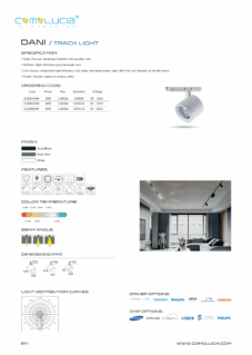 Body: Die-cast aluminum finished with powder coat. Diffuser: High efficiency anodized aluminum reflector with High-transparency tempered glass cover. LED Source: Integrated high-efficiency LED chips with high lumen, high CRI (>90) and lifespan of 50,000 hours. Finish: Powder coated in various color.