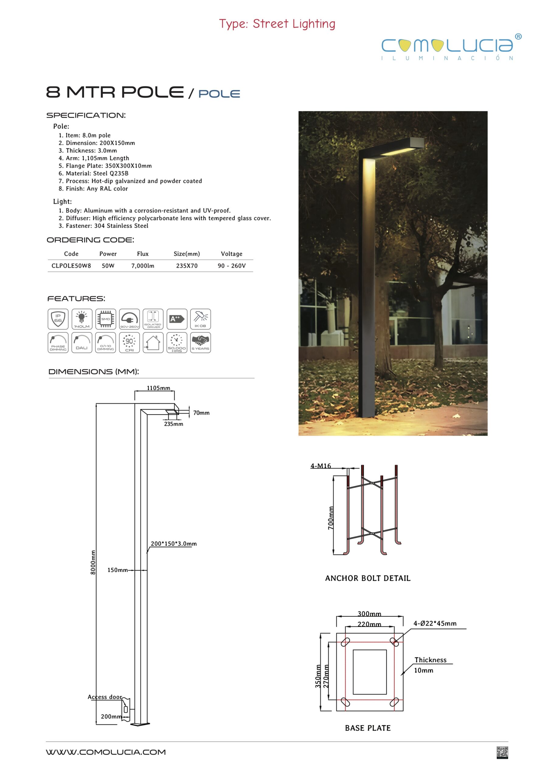 - Body: Aluminum with a corrosion-resistant and UV-proof.