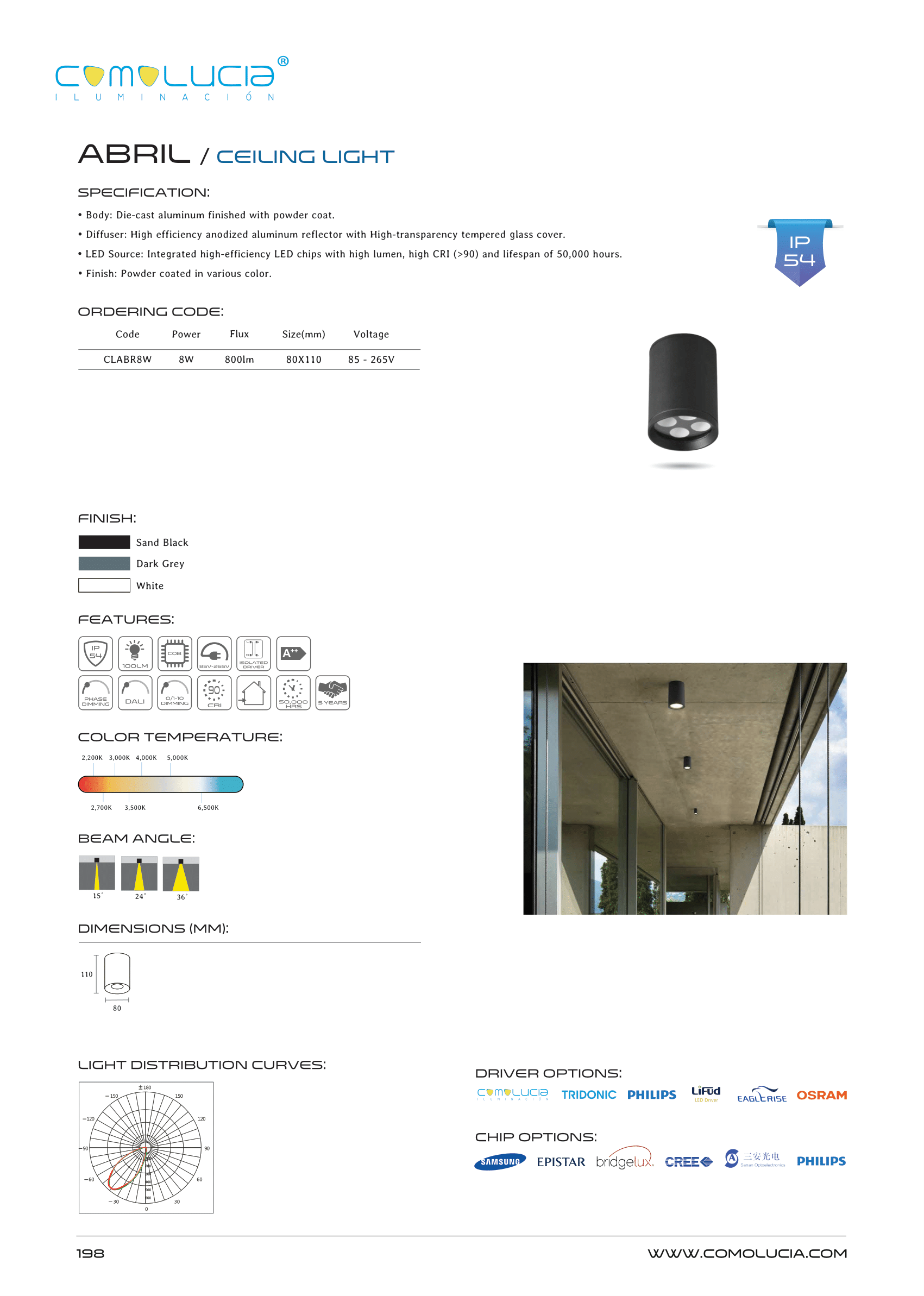 - Diffuser: High efficiency anodized aluminum reflector with High-transparency tempered glass cover.