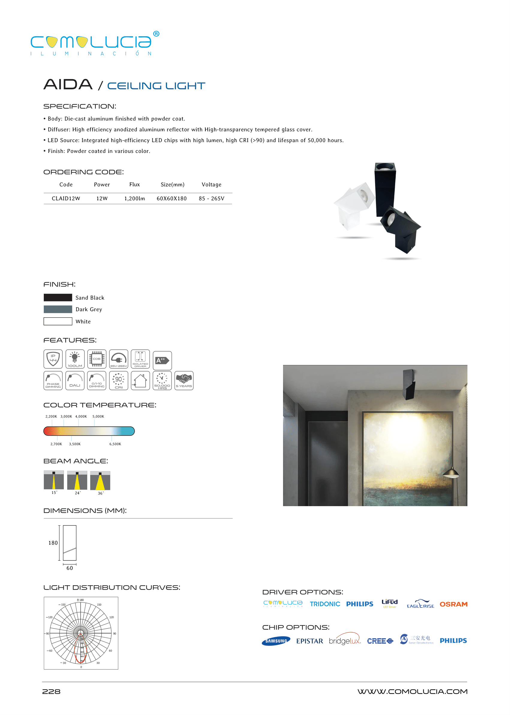 - Diffuser: High efficiency anodized aluminum reflector with High-transparency tempered glass cover.