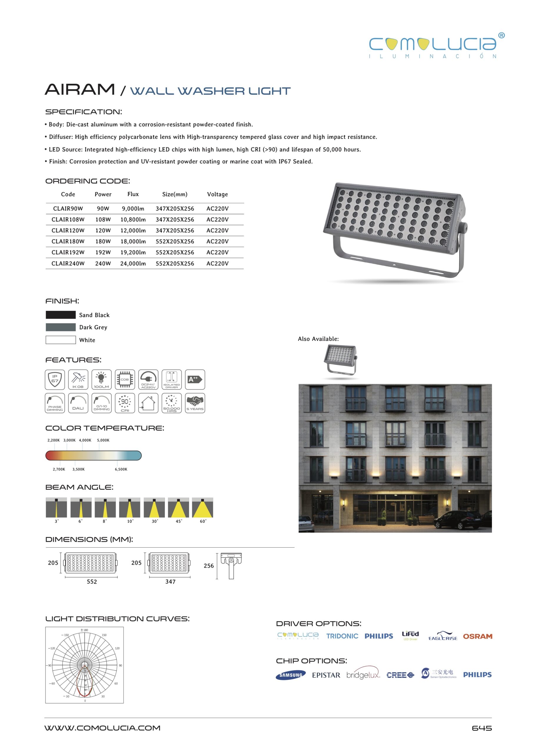 - LED Source: Integrated high-efficiency LED chips with high lumen, high CRI (>90) and lifespan of 50,000 hours.