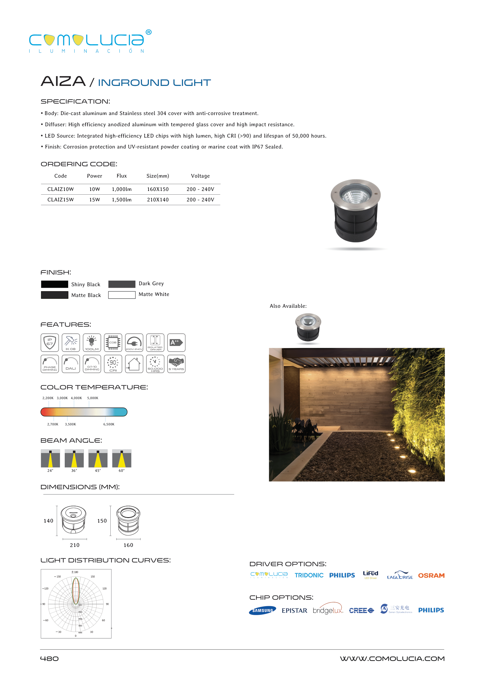 - Diffuser: High efficiency anodized aluminum with tempered glass cover and high impact resistance.