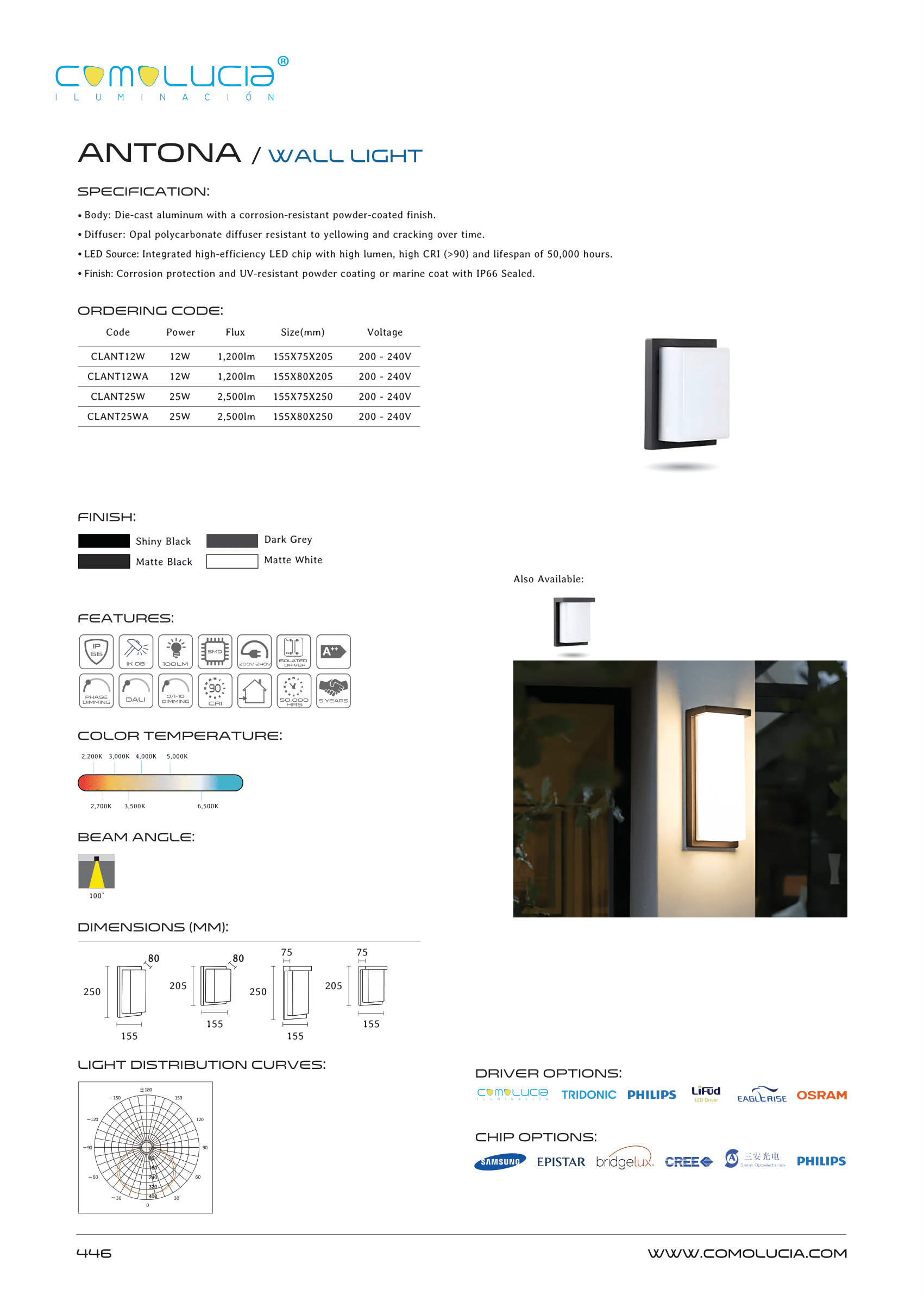 - LED Source: Integrated high-efficiency LED chip with high lumen, high CRI (>90) and lifespan of 50,000 hours.
