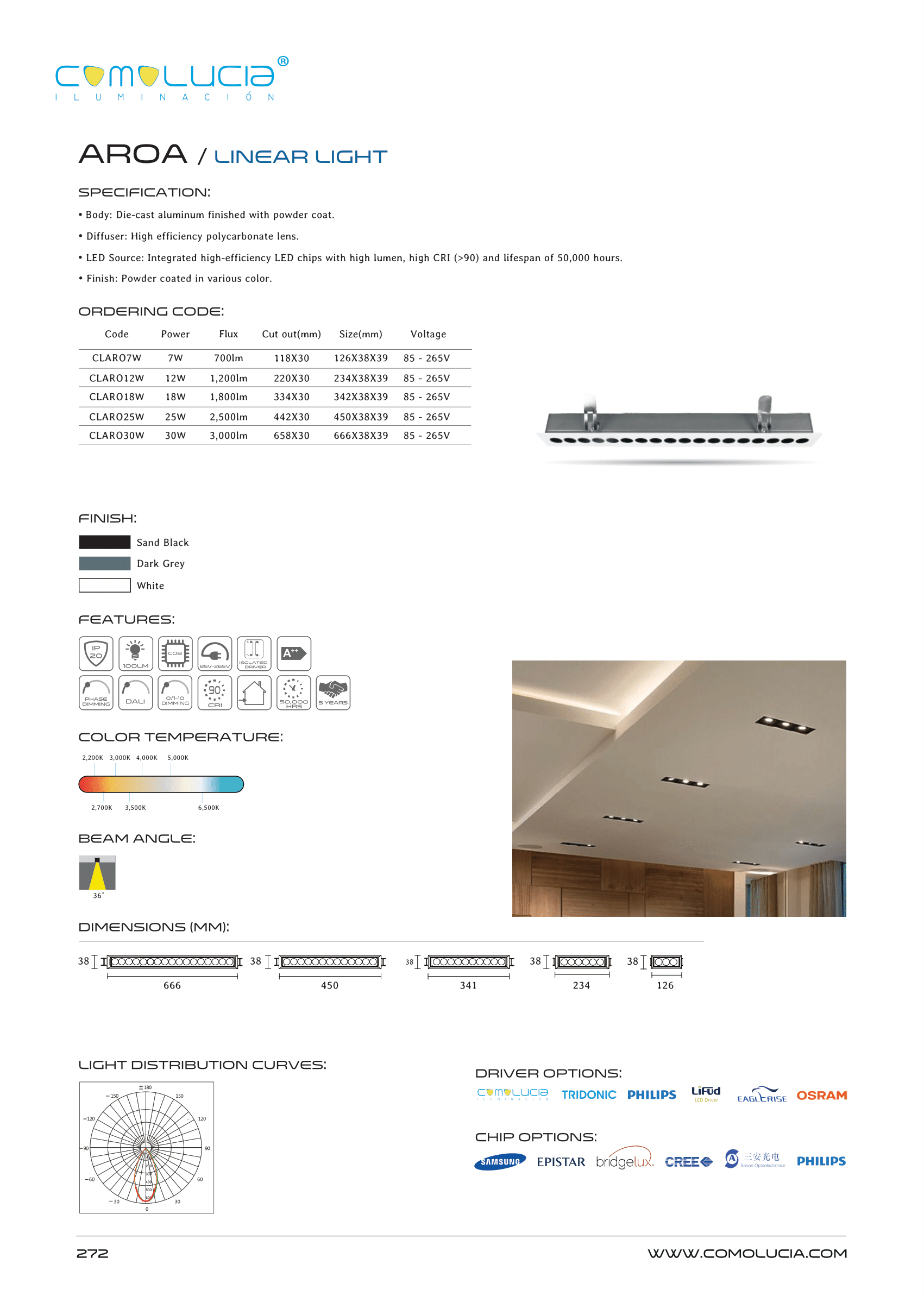 - LED Source: Integrated high-efficiency LED chips with high lumen, high CRI (>90) and lifespan of 50,000 hours.