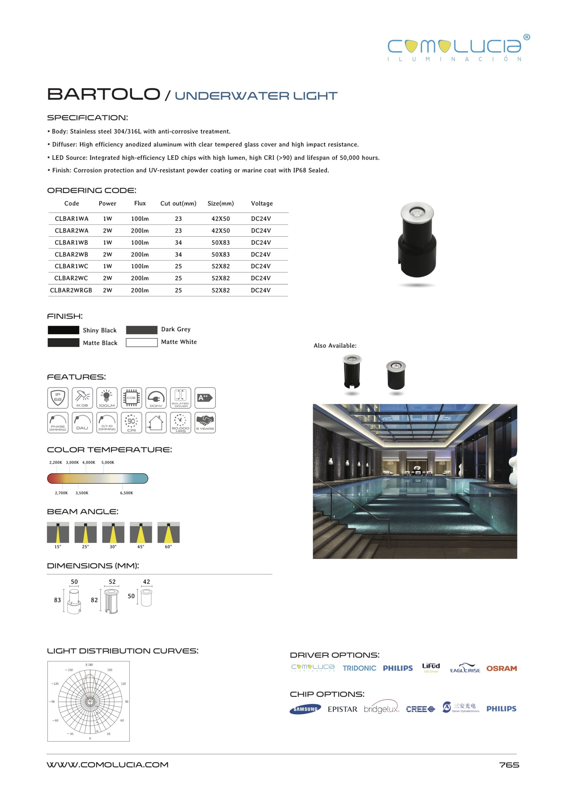 - Finish: Corrosion protection and UV-resistant powder coating or marine coat with IP68 Sealed.