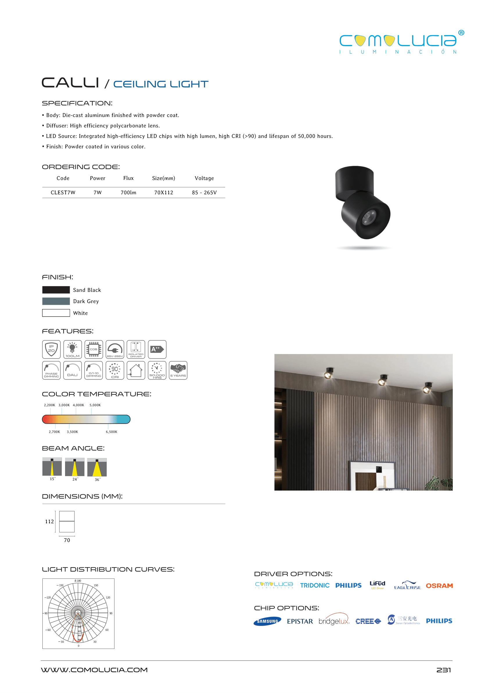 - LED Source: Integrated high-efficiency LED chips with high lumen, high CRI (>90) and lifespan of 50,000 hours.