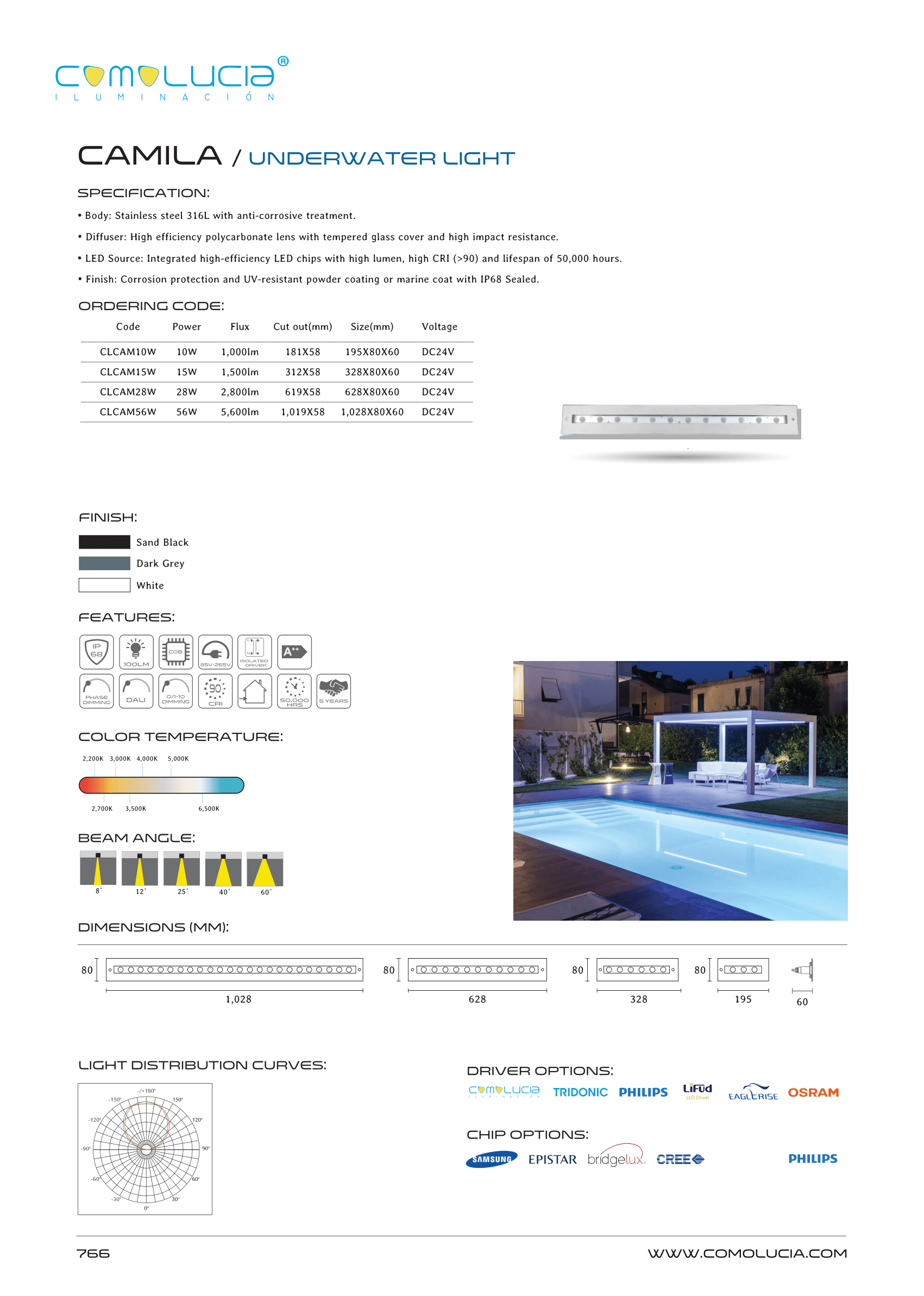 - Finish: Corrosion protection and UV-resistant powder coating or marine coat with IP68 Sealed.