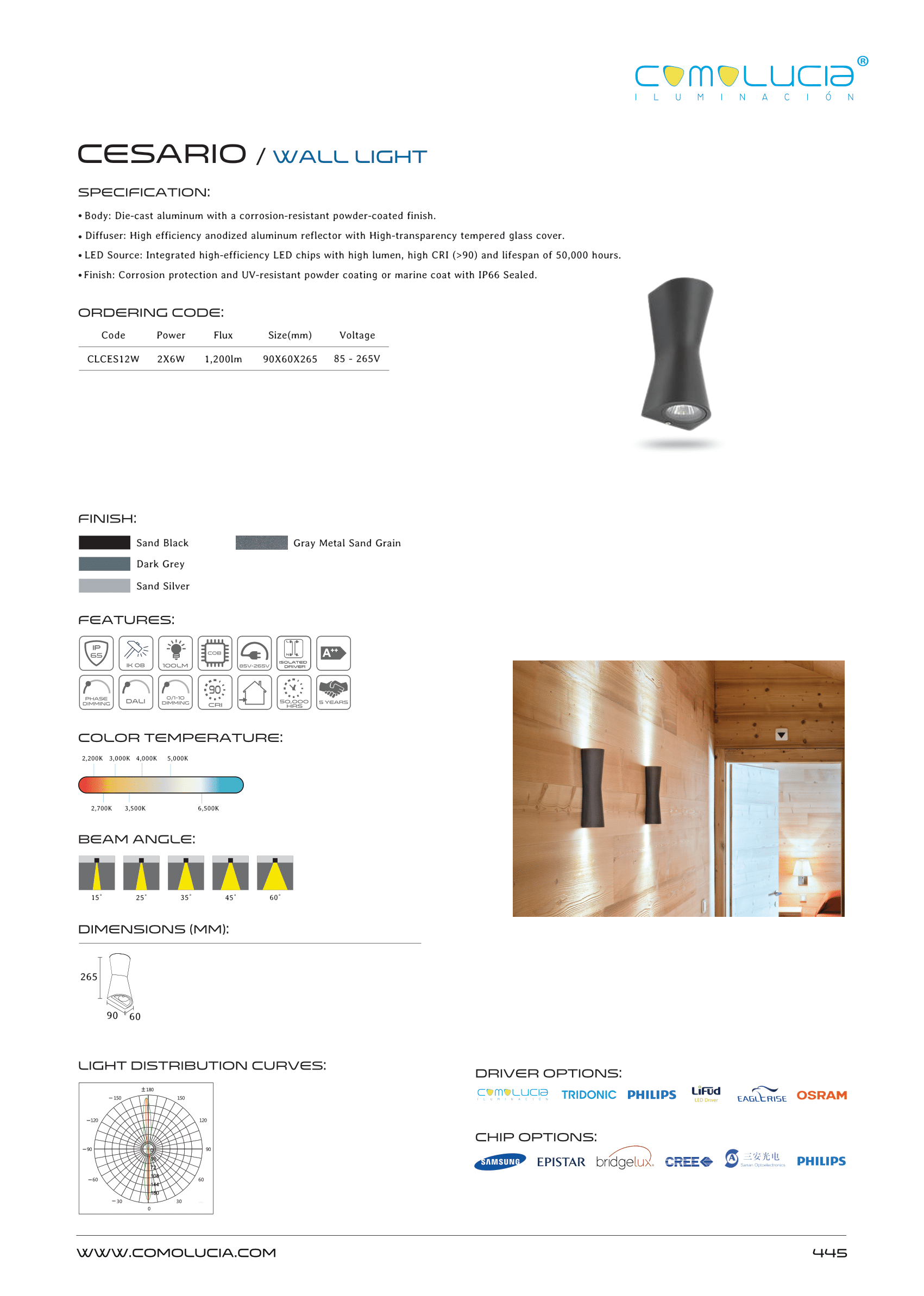 - Diffuser: High efficiency anodized aluminum reflector with High-transparency tempered glass cover.