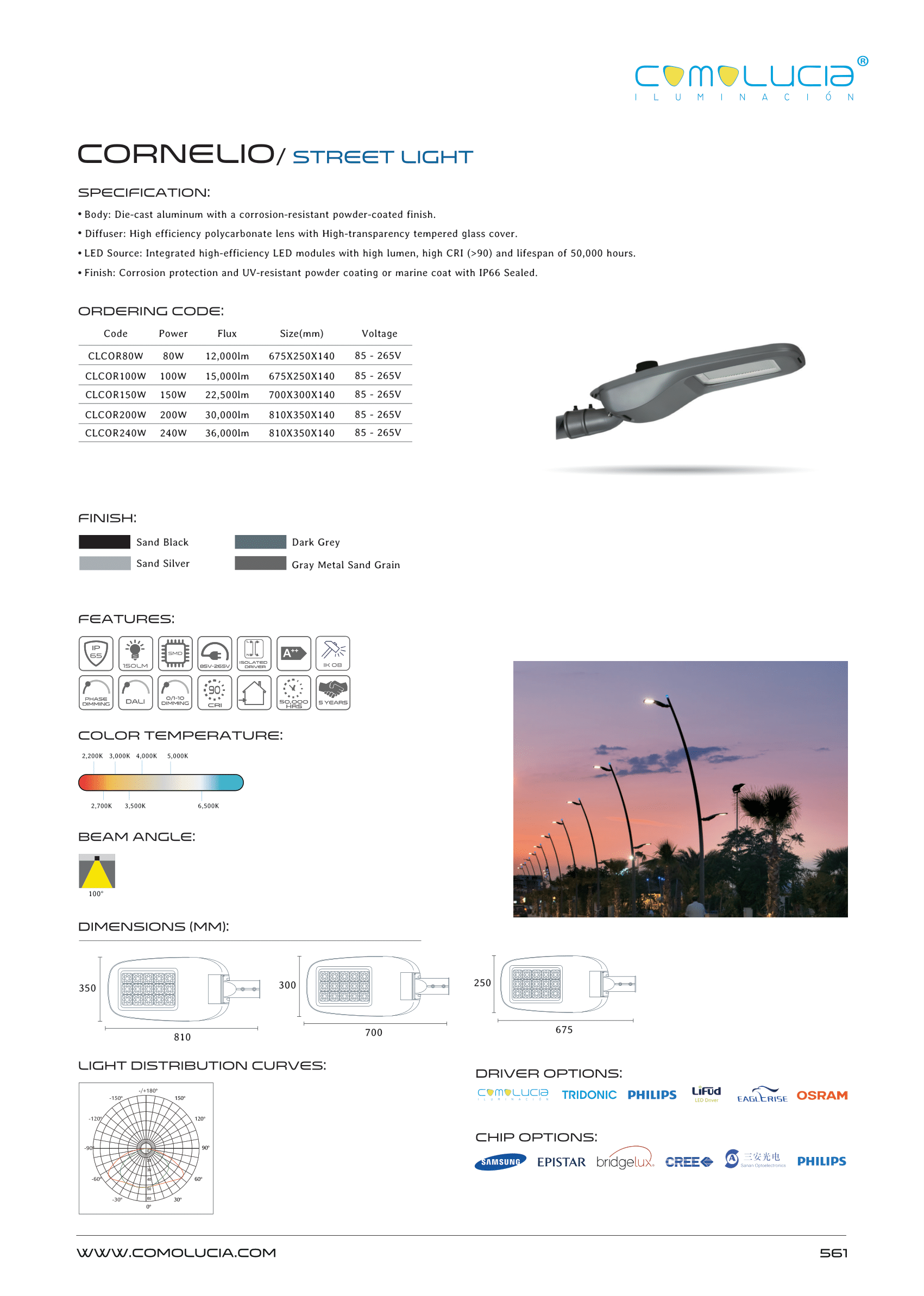 - LED Source: Integrated high-efficiency LED modules with high lumen, high CRI (>90) and lifespan of 50,000 hours.
