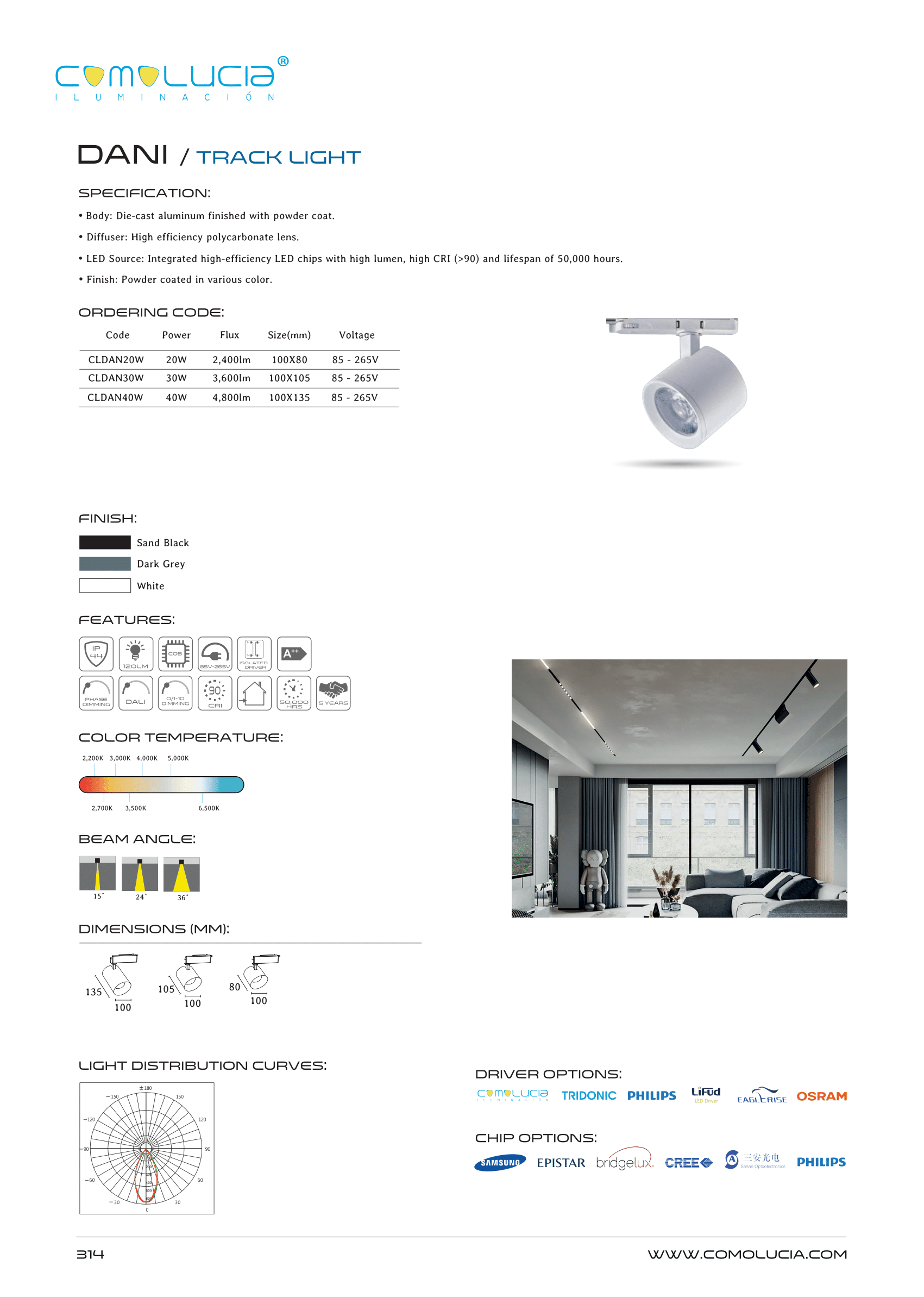 - LED Source: Integrated high-efficiency LED chips with high lumen, high CRI (>90) and lifespan of 50,000 hours.