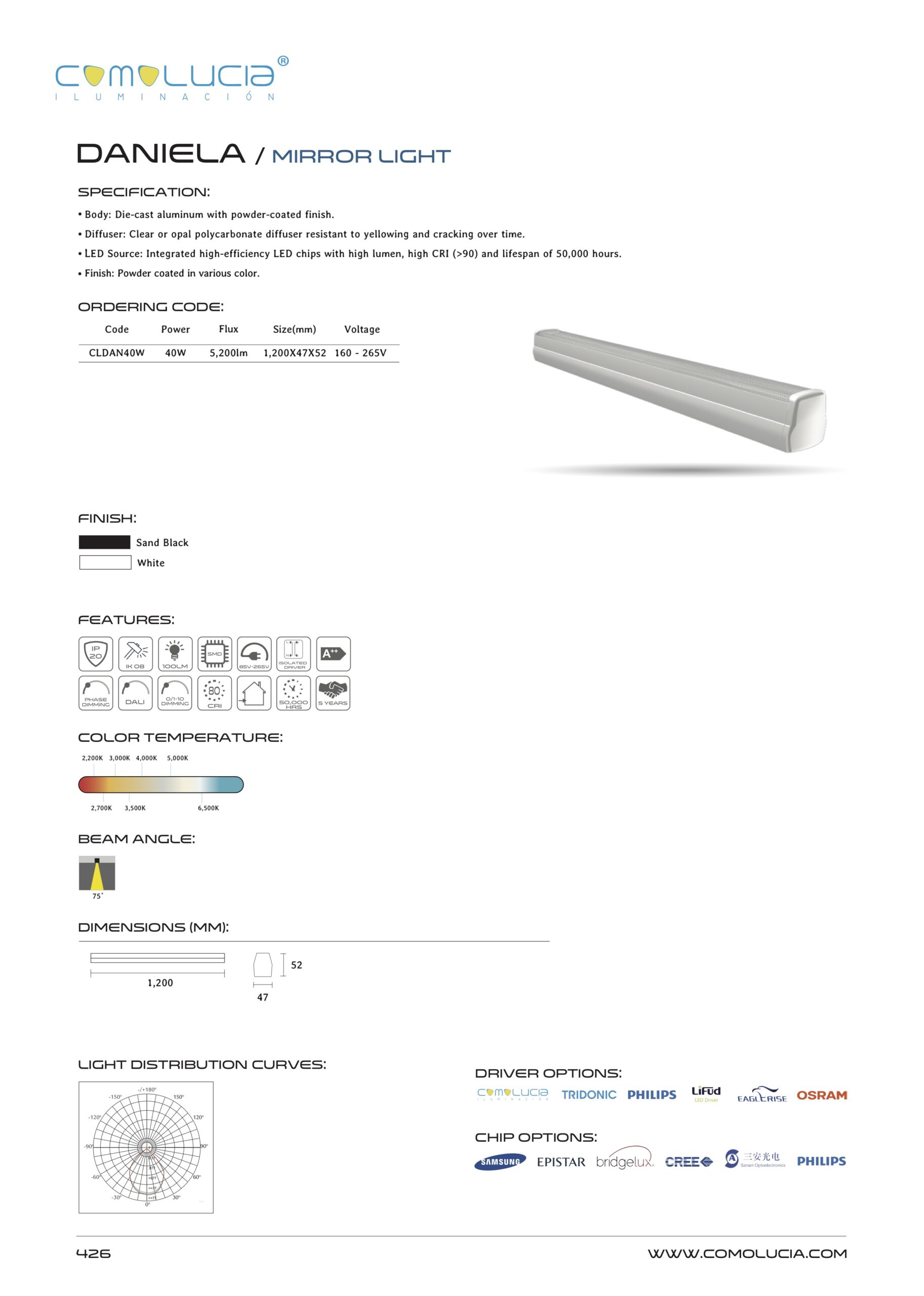 - LED Source: Integrated high-efficiency LED chips with high lumen, high CRI (>90) and lifespan of 50,000 hours.