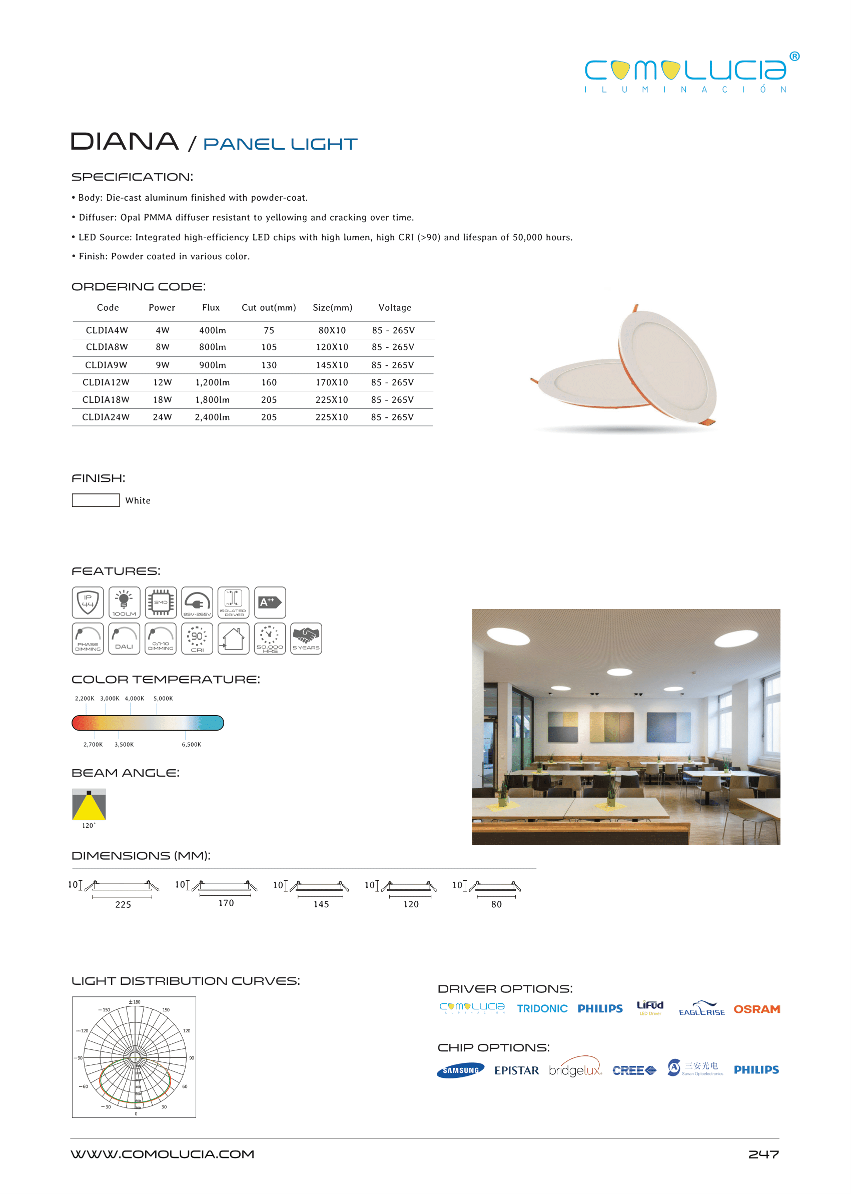 - Diffuser: Opal PMMA diffuser resistant to yellowing and cracking over time.