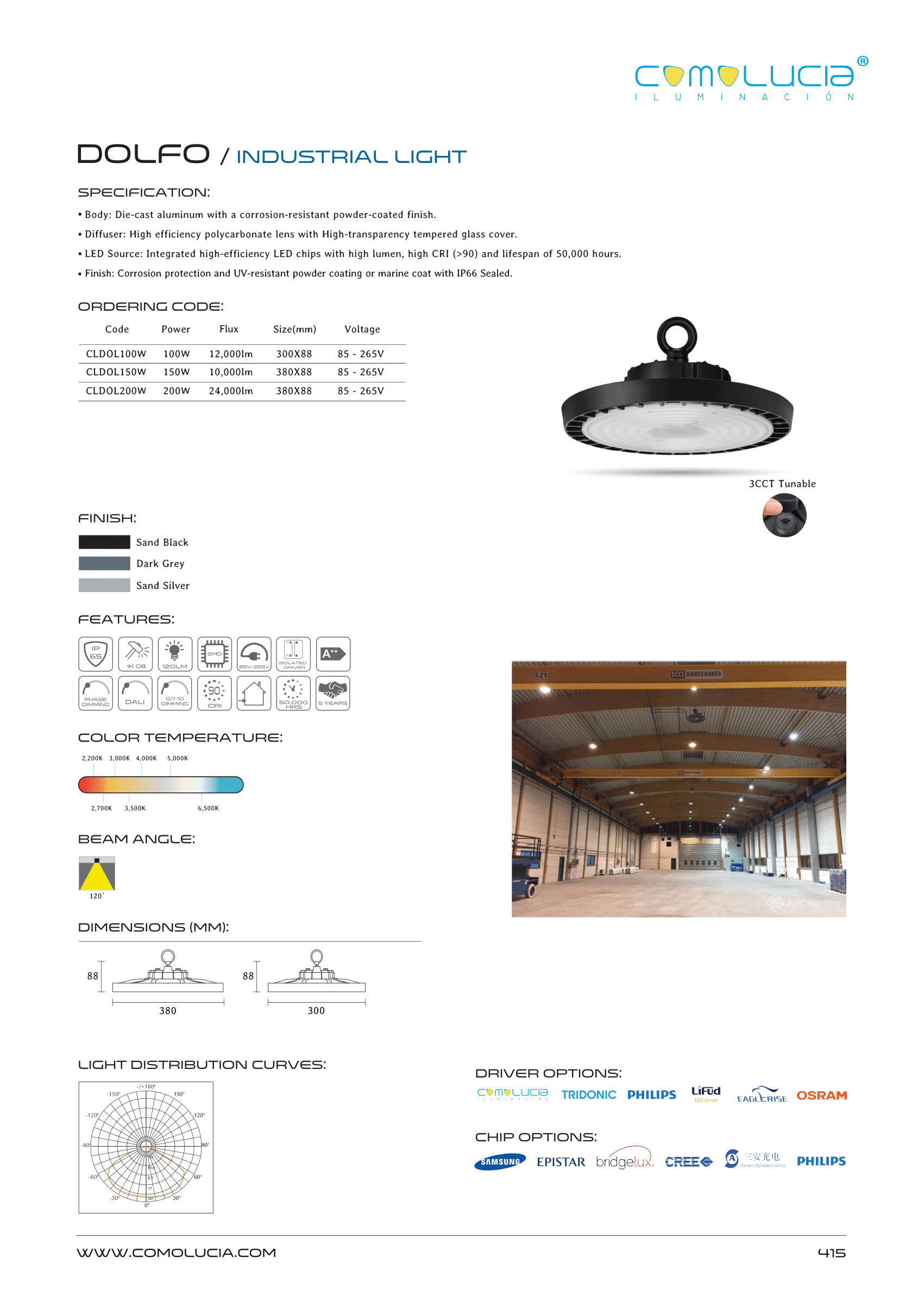 - Diffuser: High efficiency polycarbonate lens with High-transparency tempered glass cover.