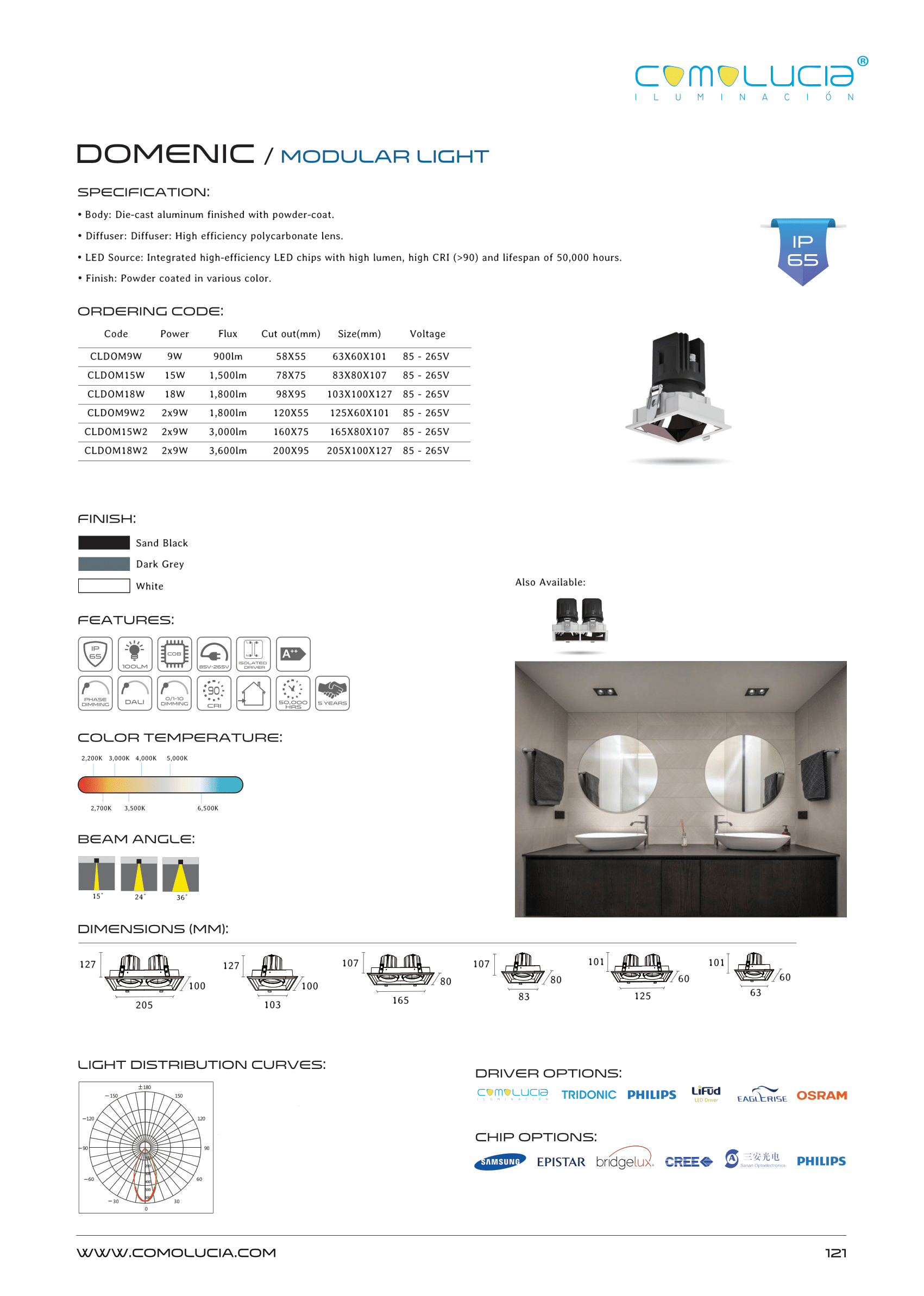 - LED Source: Integrated high-efficiency LED chips with high lumen, high CRI (>90) and lifespan of 50,000 hours.
