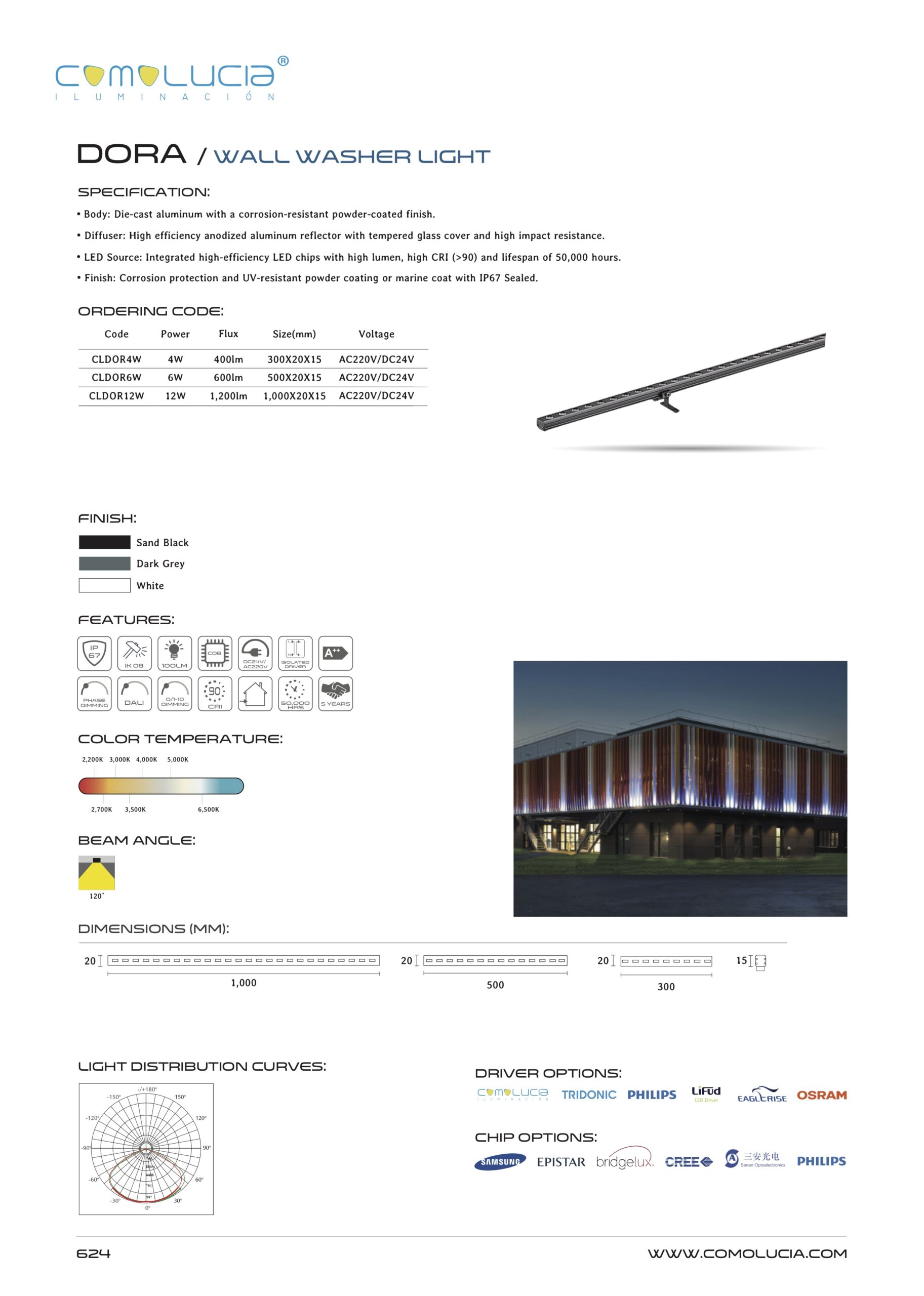 - LED Source: Integrated high-efficiency LED chips with high lumen, high CRI (>90) and lifespan of 50,000 hours.
