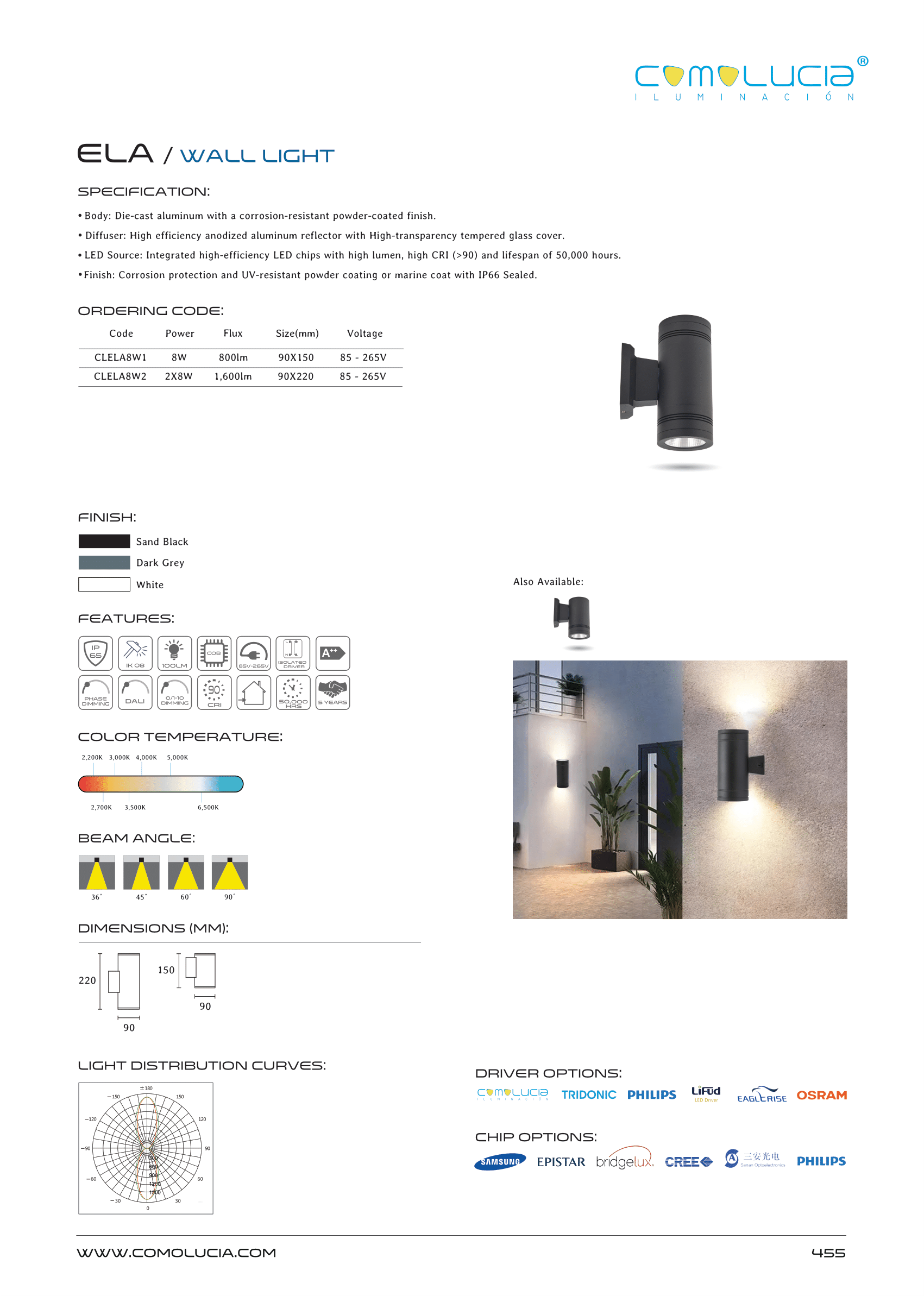 - Diffuser: High efficiency anodized aluminum reflector with High-transparency tempered glass cover.