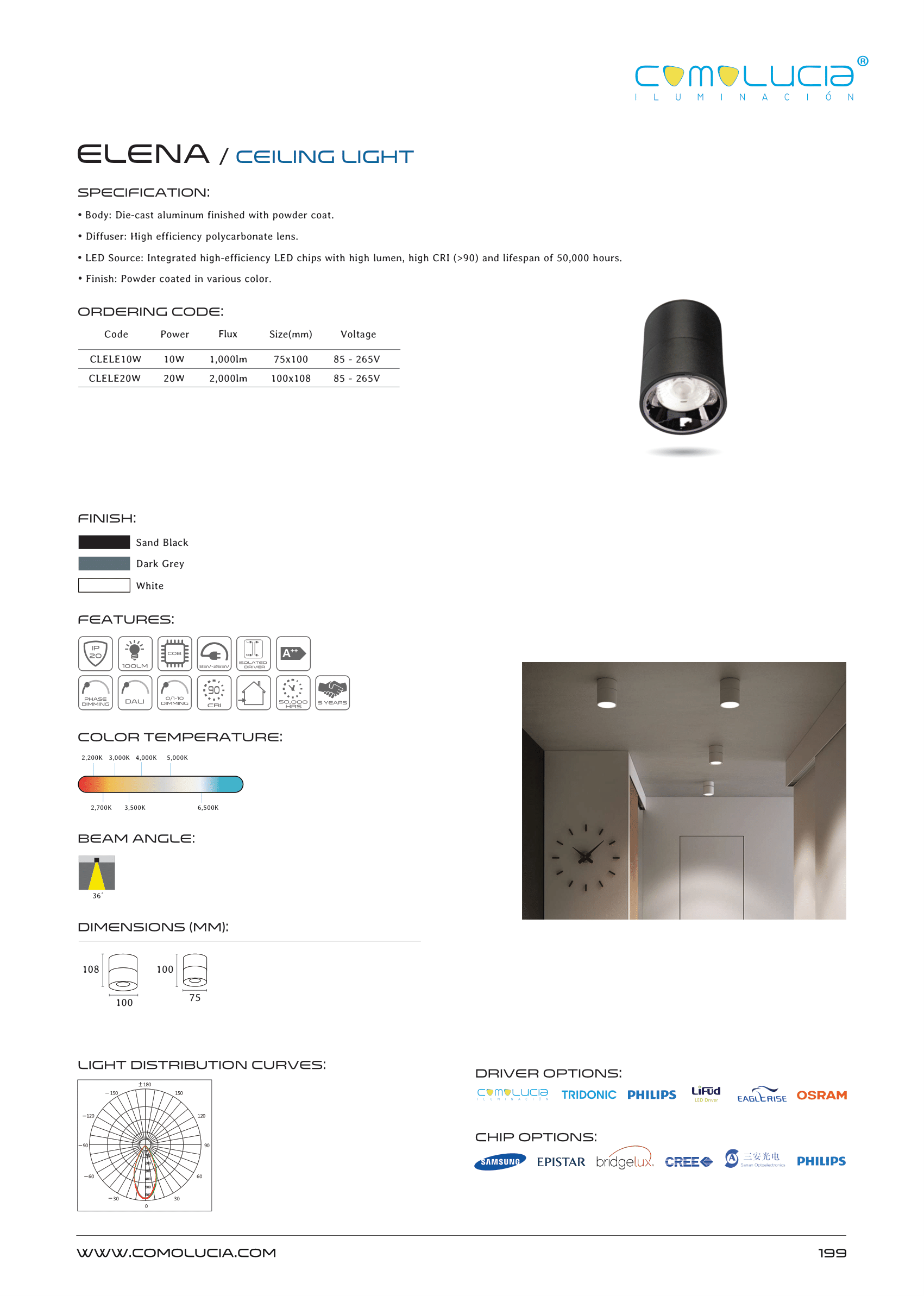 - LED Source: Integrated high-efficiency LED chips with high lumen, high CRI (>90) and lifespan of 50,000 hours.