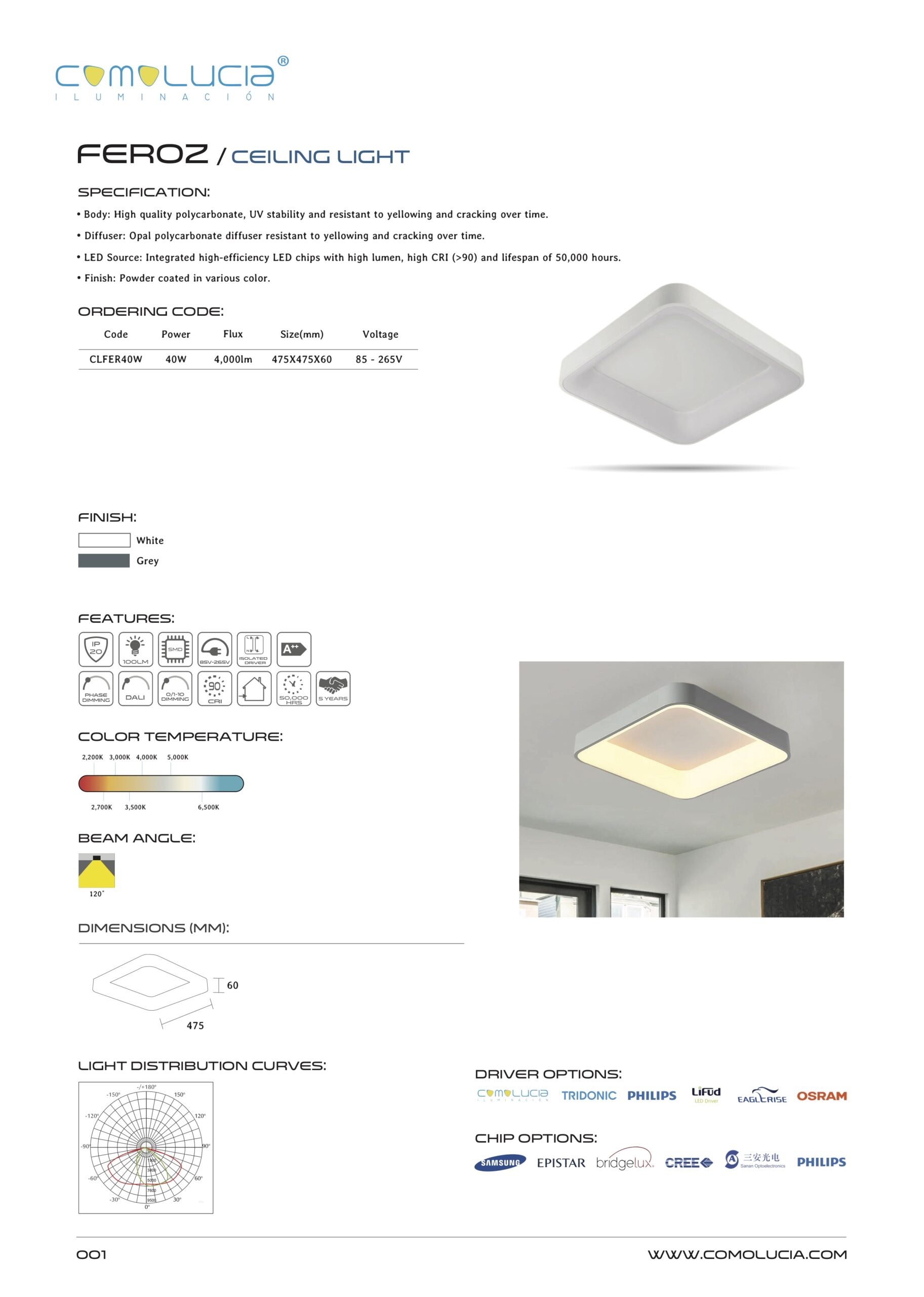 - Diffuser: Opal polycarbonate diffuser resistant to yellowing and cracking over time.