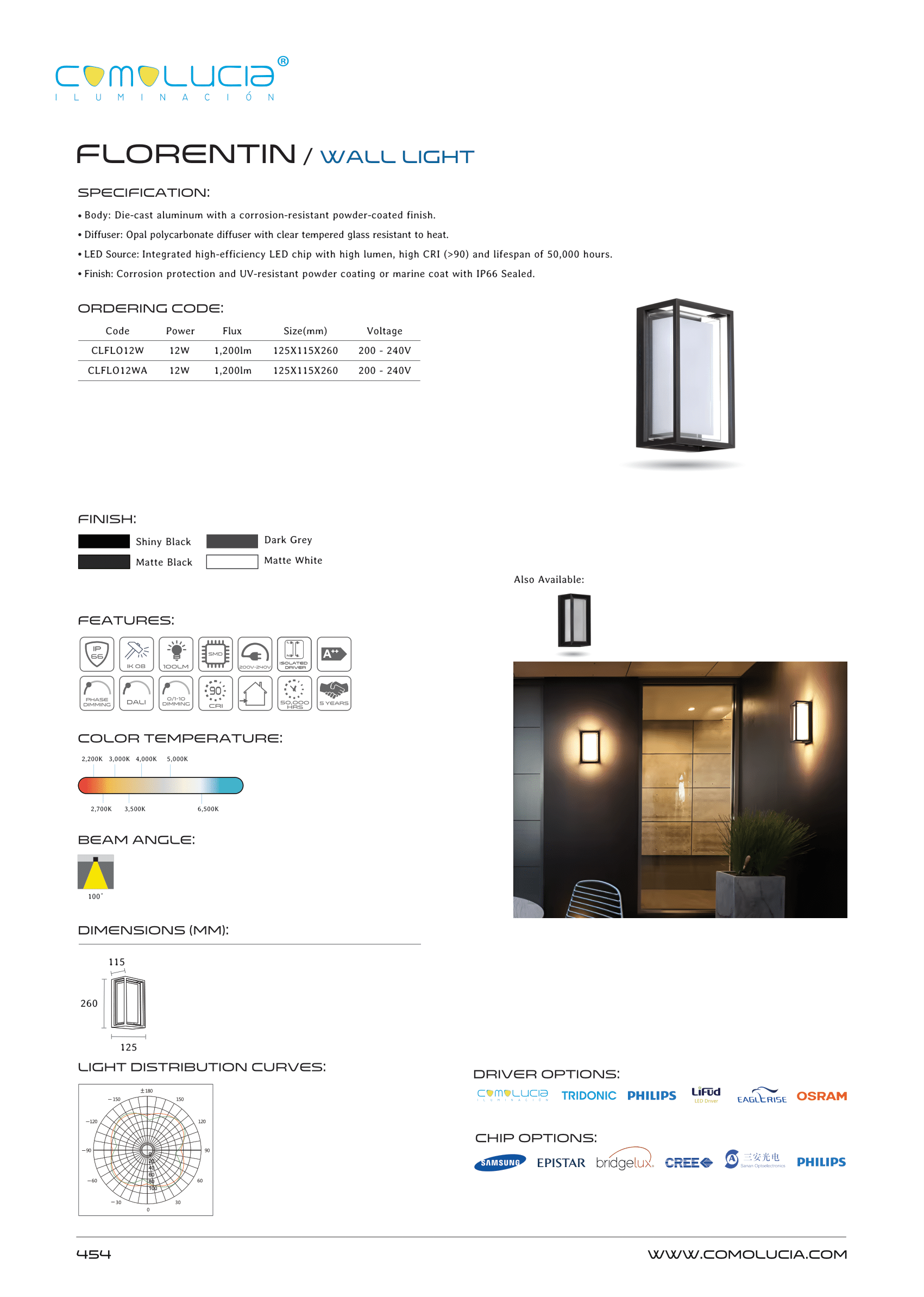 - LED Source: Integrated high-efficiency LED chip with high lumen, high CRI (>90) and lifespan of 50,000 hours.