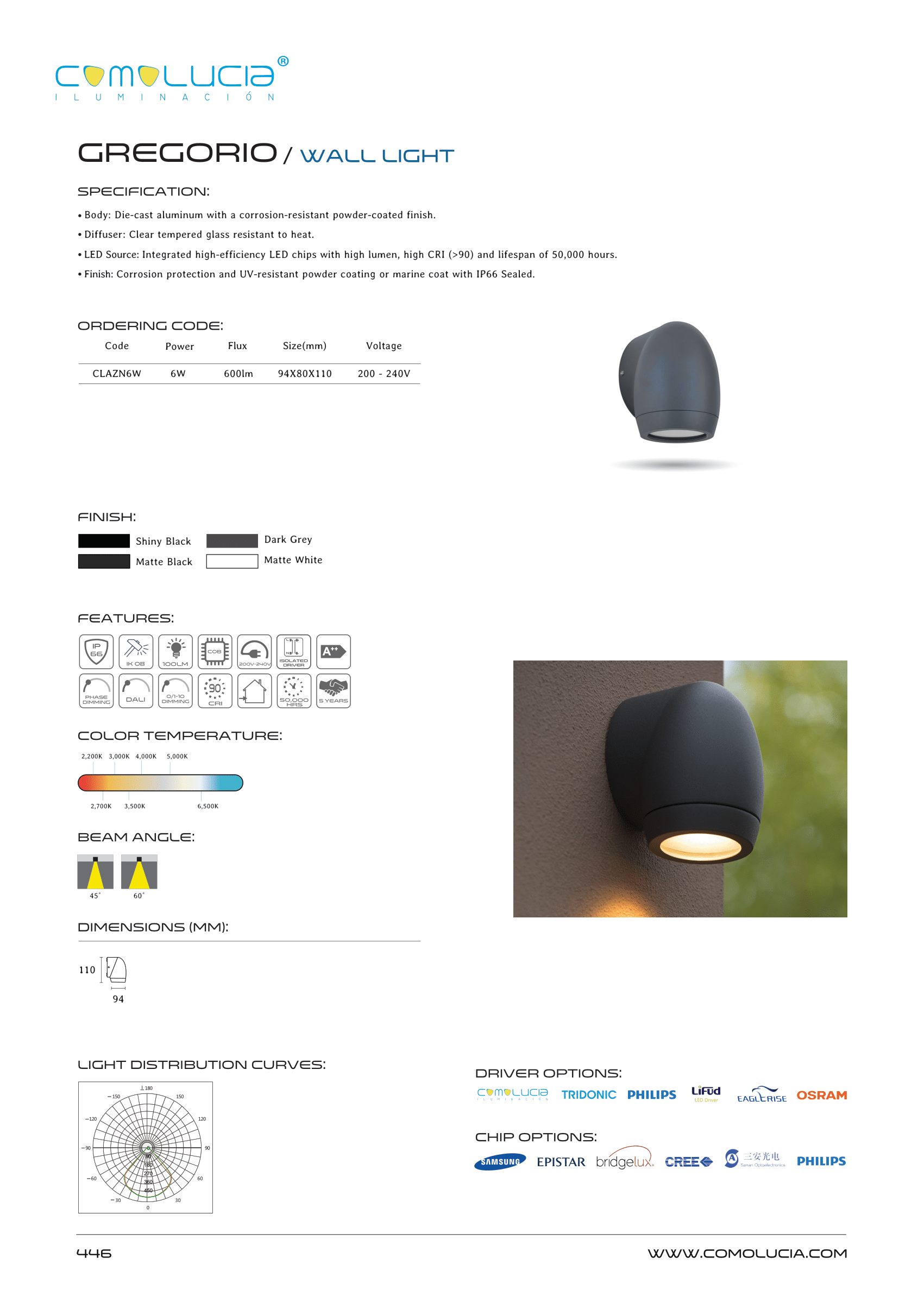 - LED Source: Integrated high-efficiency LED chips with high lumen, high CRI (>90) and lifespan of 50,000 hours.