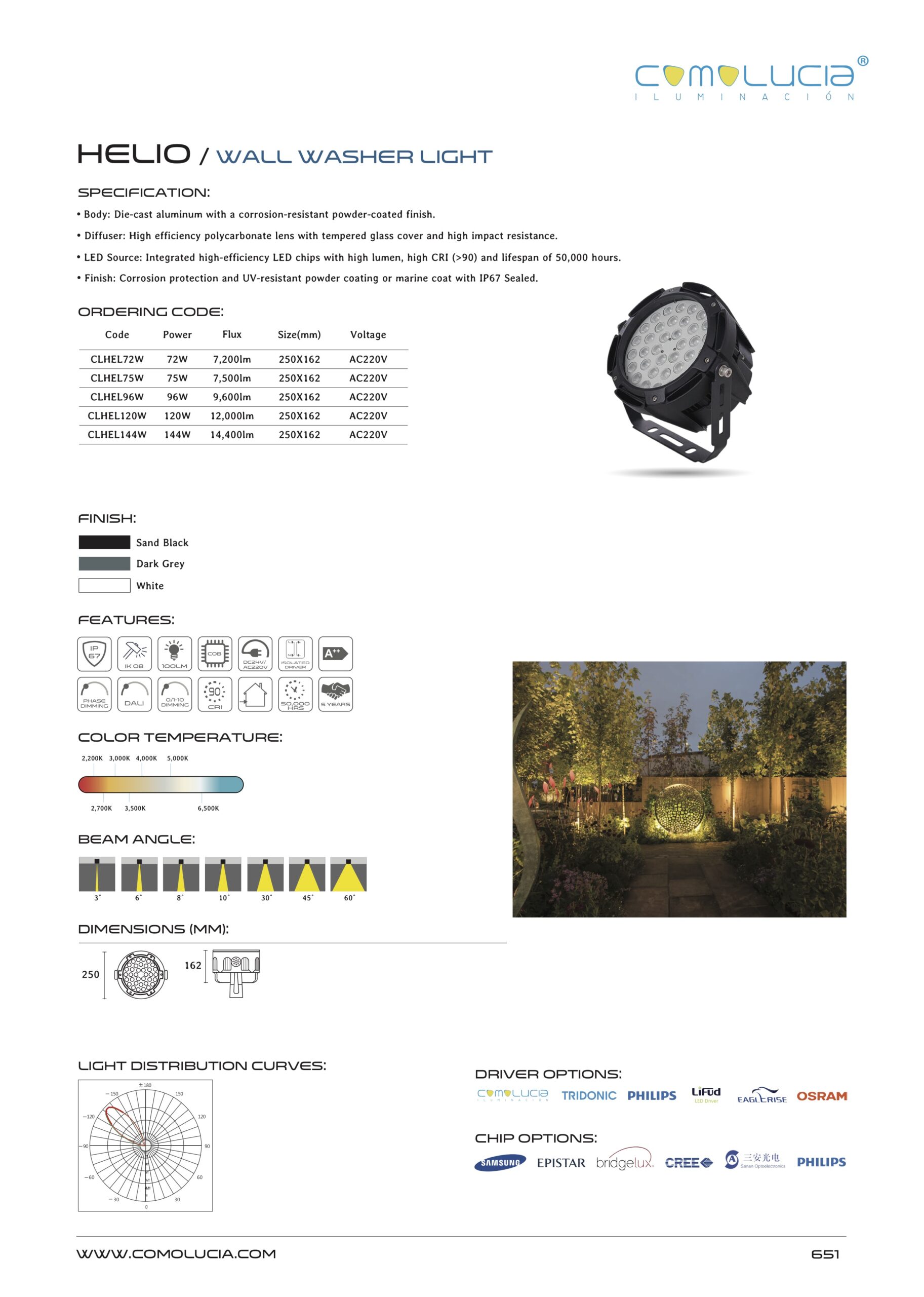 - Diffuser: High efficiency polycarbonate lens with tempered glass cover and high impact resistance.