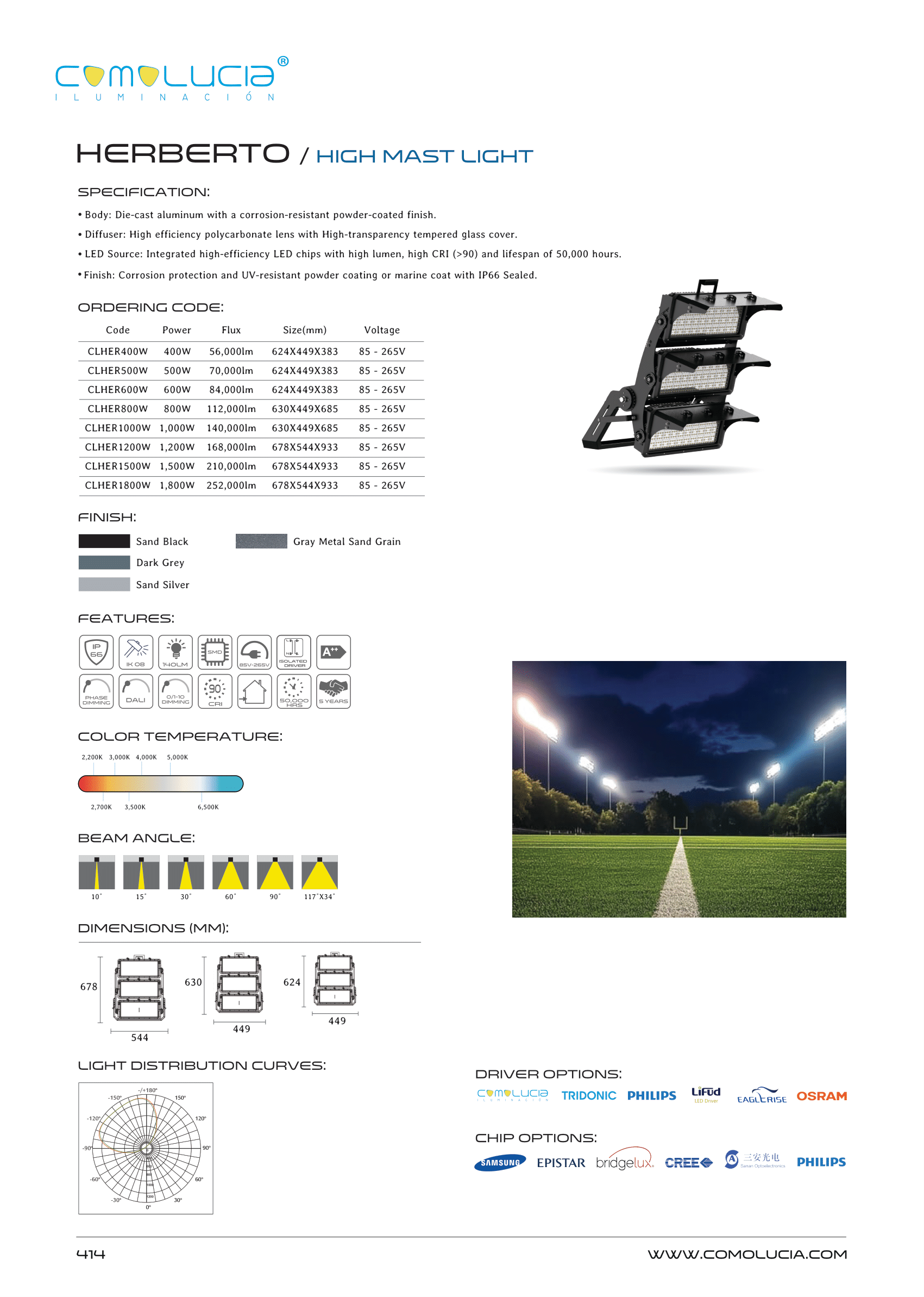 - Finish: Corrosion protection and UV-resistant powder coating or marine coat with IP66 Sealed.