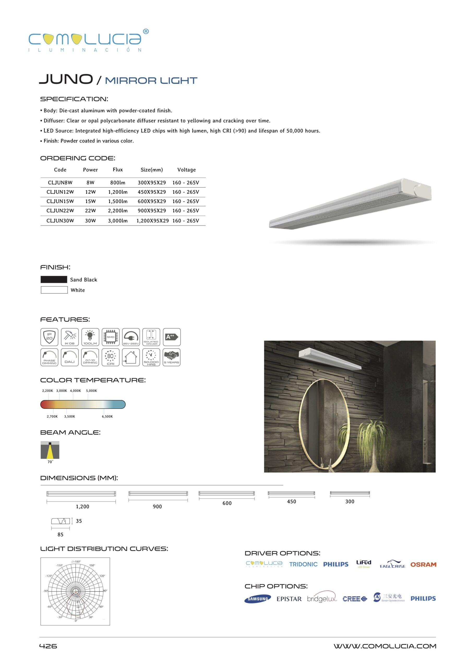 - LED Source: Integrated high-efficiency LED chips with high lumen, high CRI (>90) and lifespan of 50,000 hours.