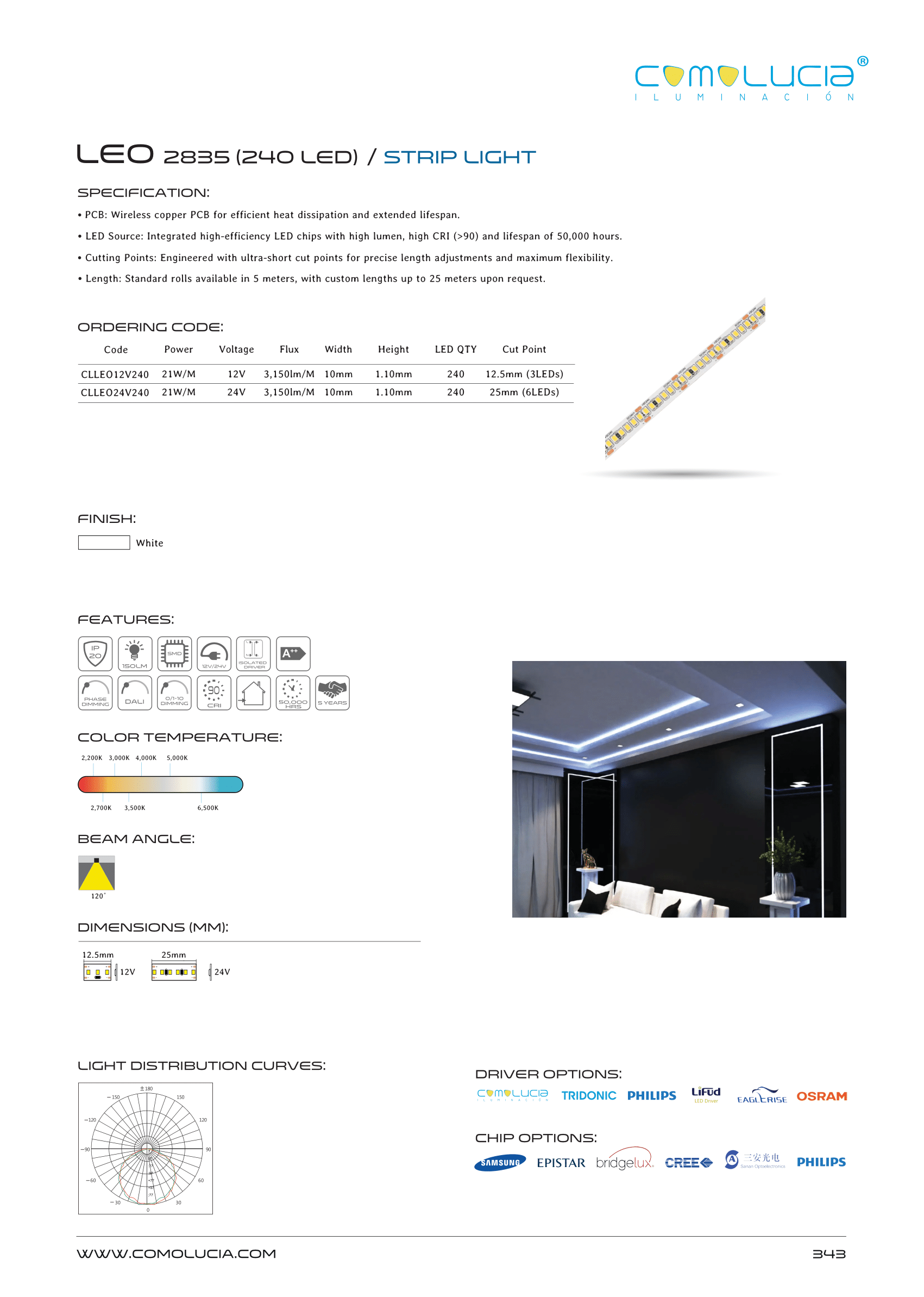 - LED Source: Integrated high-efficiency LED chips with high lumen, high CRI (>90) and lifespan of 50,000 hours.