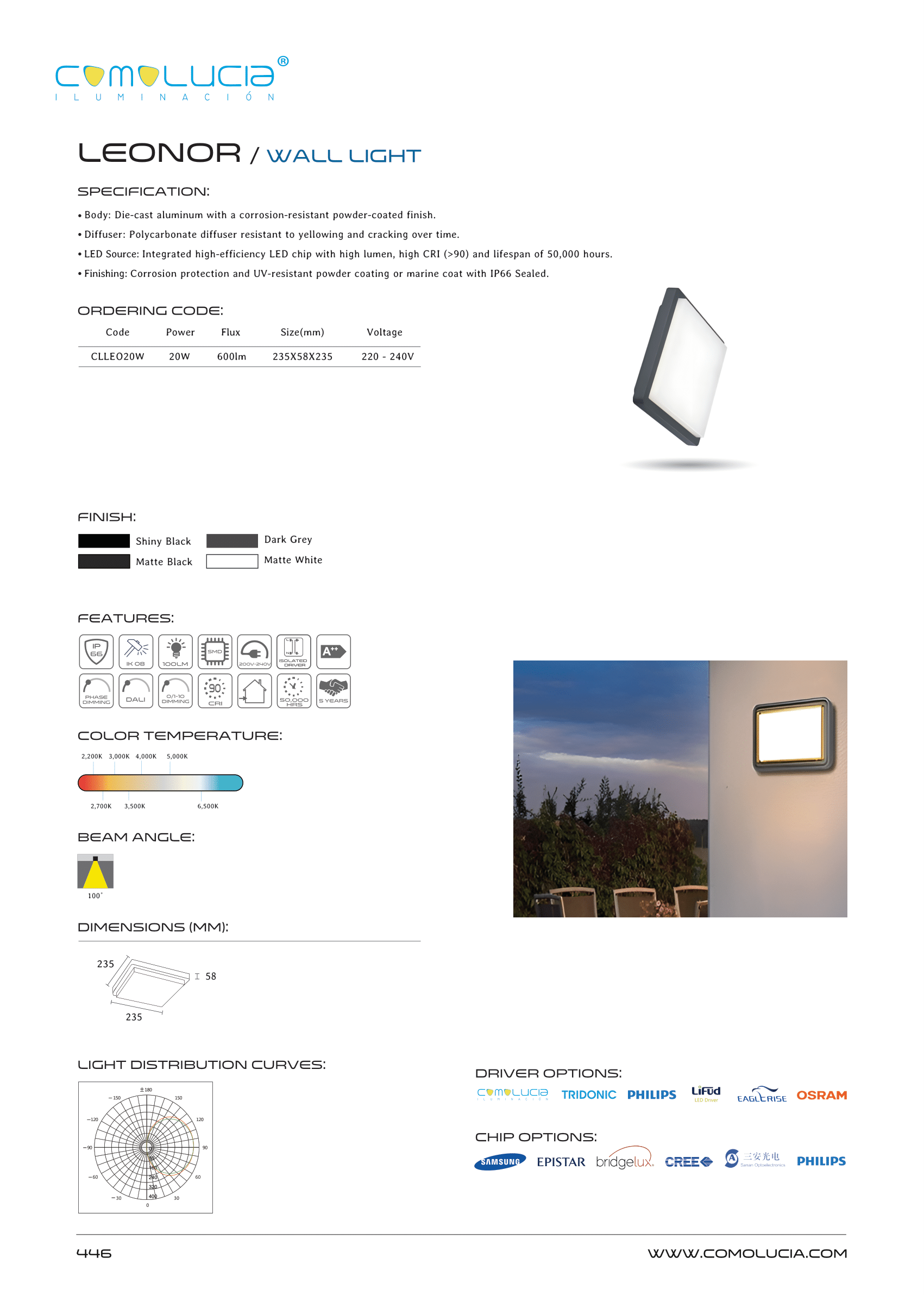 - Finish: Corrosion protection and UV-resistant powder coating or marine coat with IP66 Sealed.