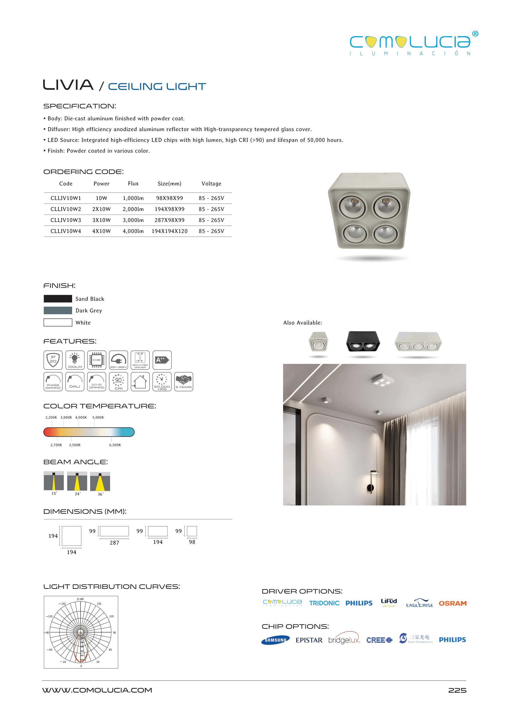 - LED Source: Integrated high-efficiency LED chips with high lumen, high CRI (>90) and lifespan of 50,000 hours.