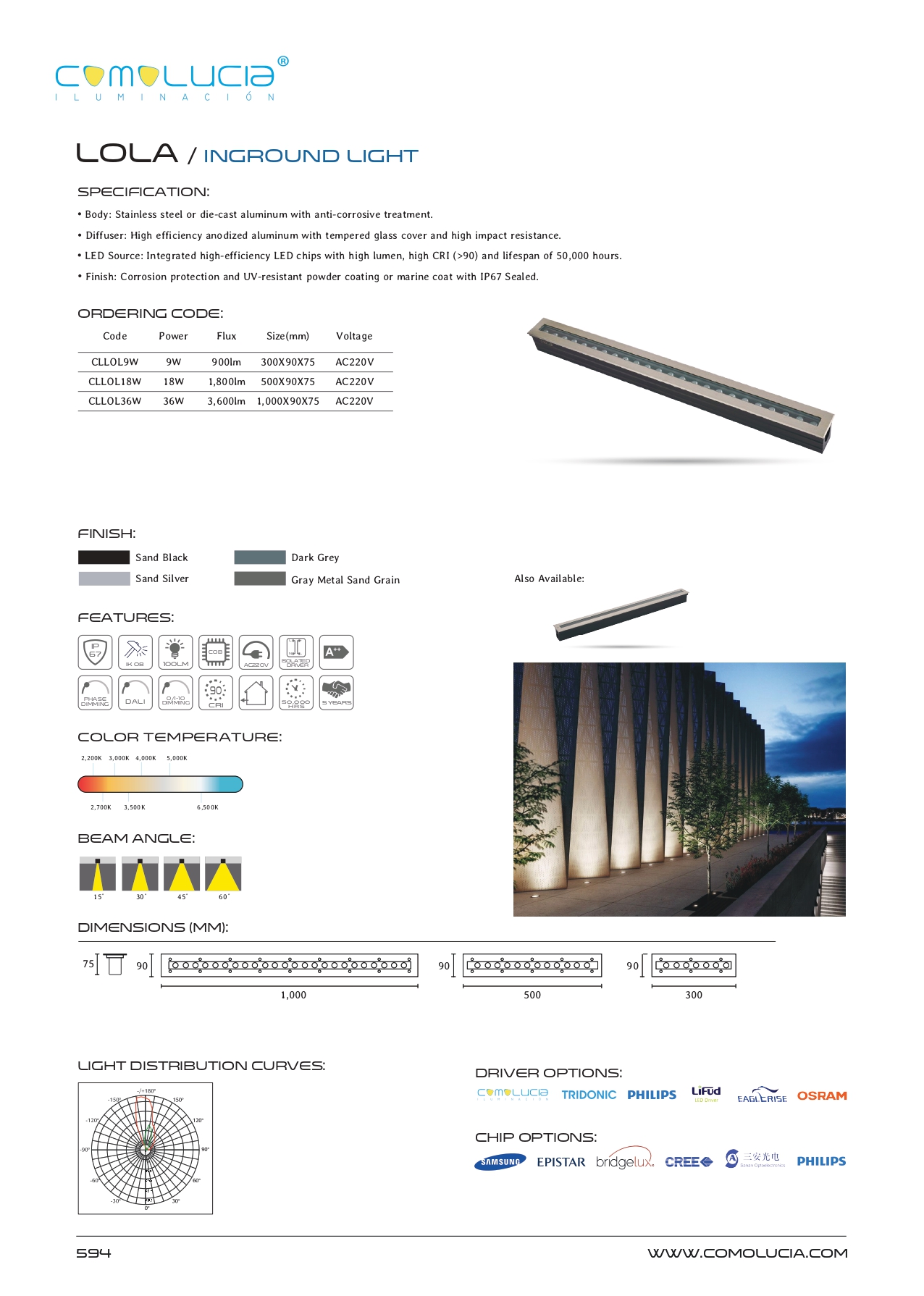 - Diffuser: High efficiency anodized aluminum with tempered glass cover and high impact resistance.
