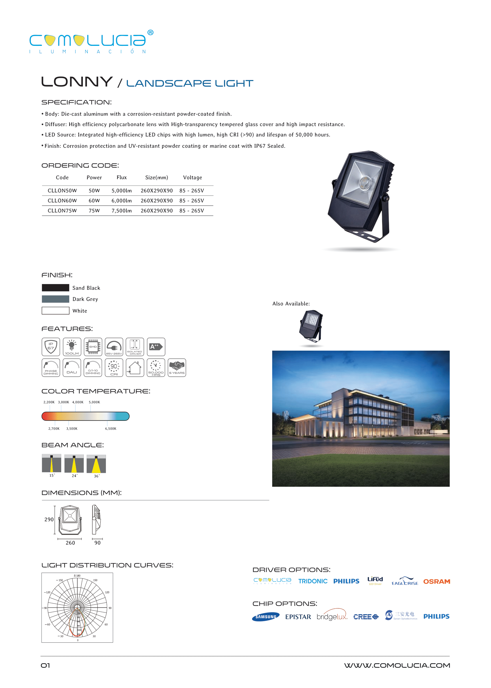 - LED Source: Integrated high-efficiency LED chips with high lumen, high CRI (>90) and lifespan of 50,000 hours.