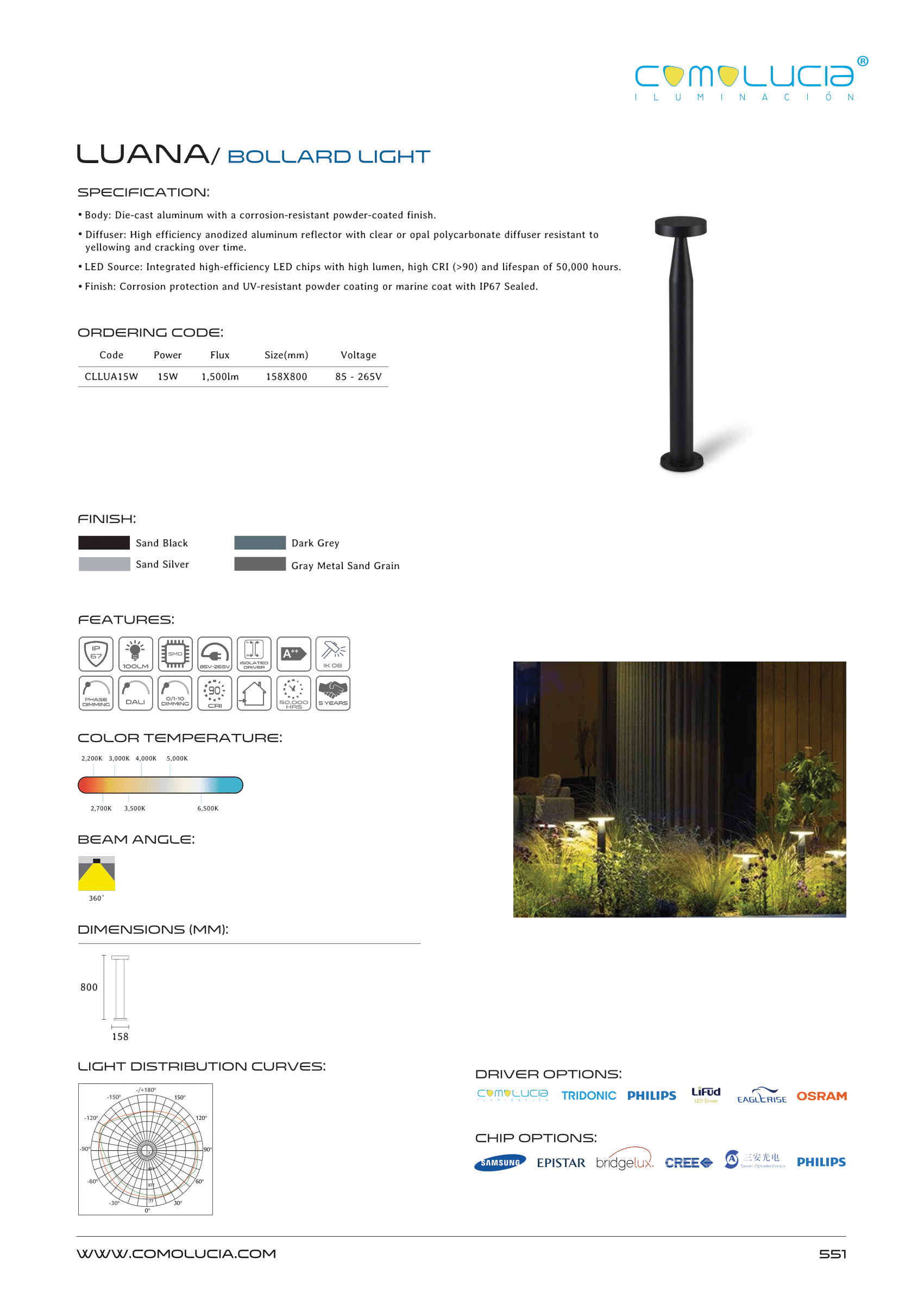 - LED Source: Integrated high-efficiency LED chips with high lumen, high CRI (>90) and lifespan of 50,000 hours.