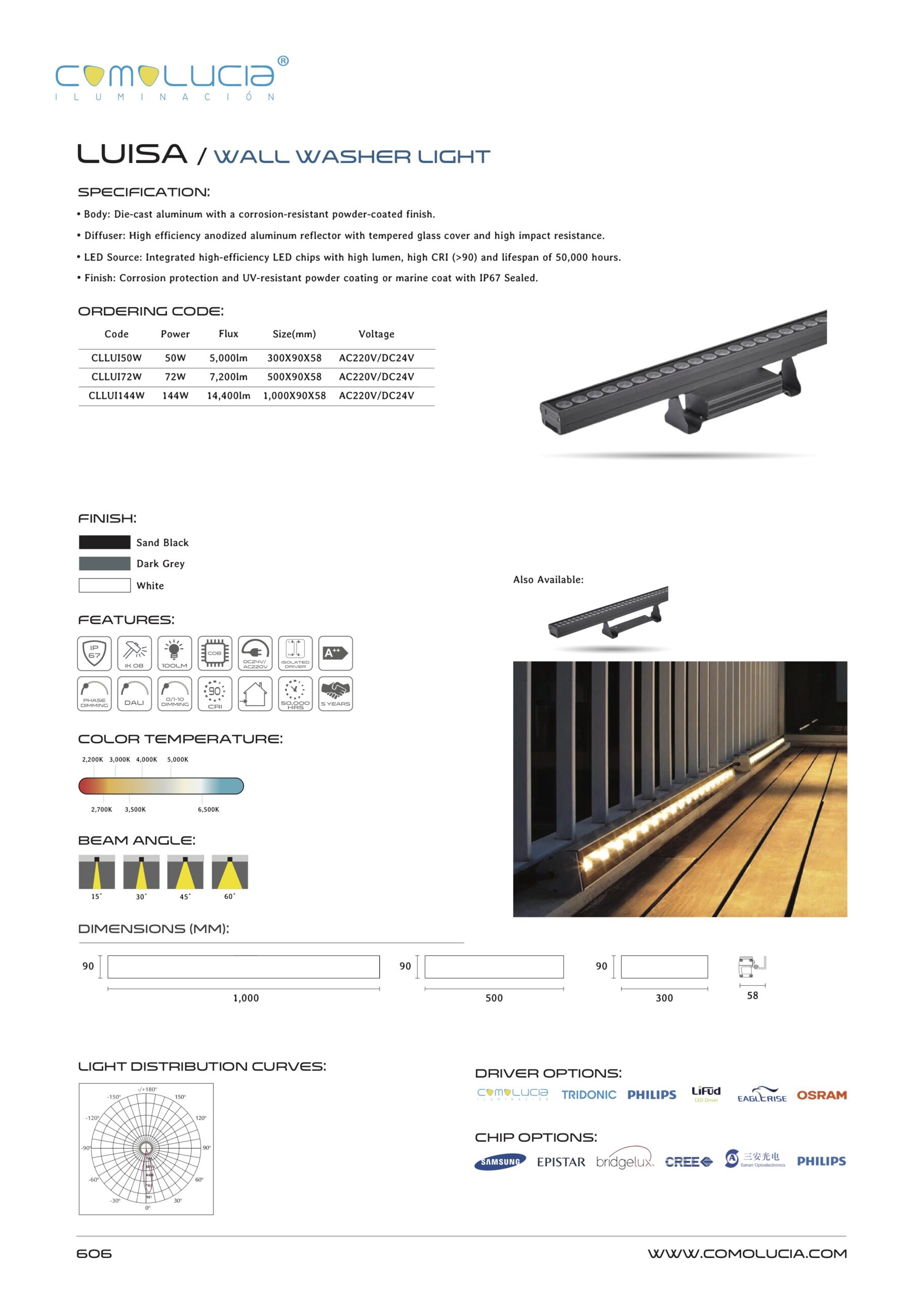 - LED Source: Integrated high-efficiency LED chips with high lumen, high CRI (>90) and lifespan of 50,000 hours.