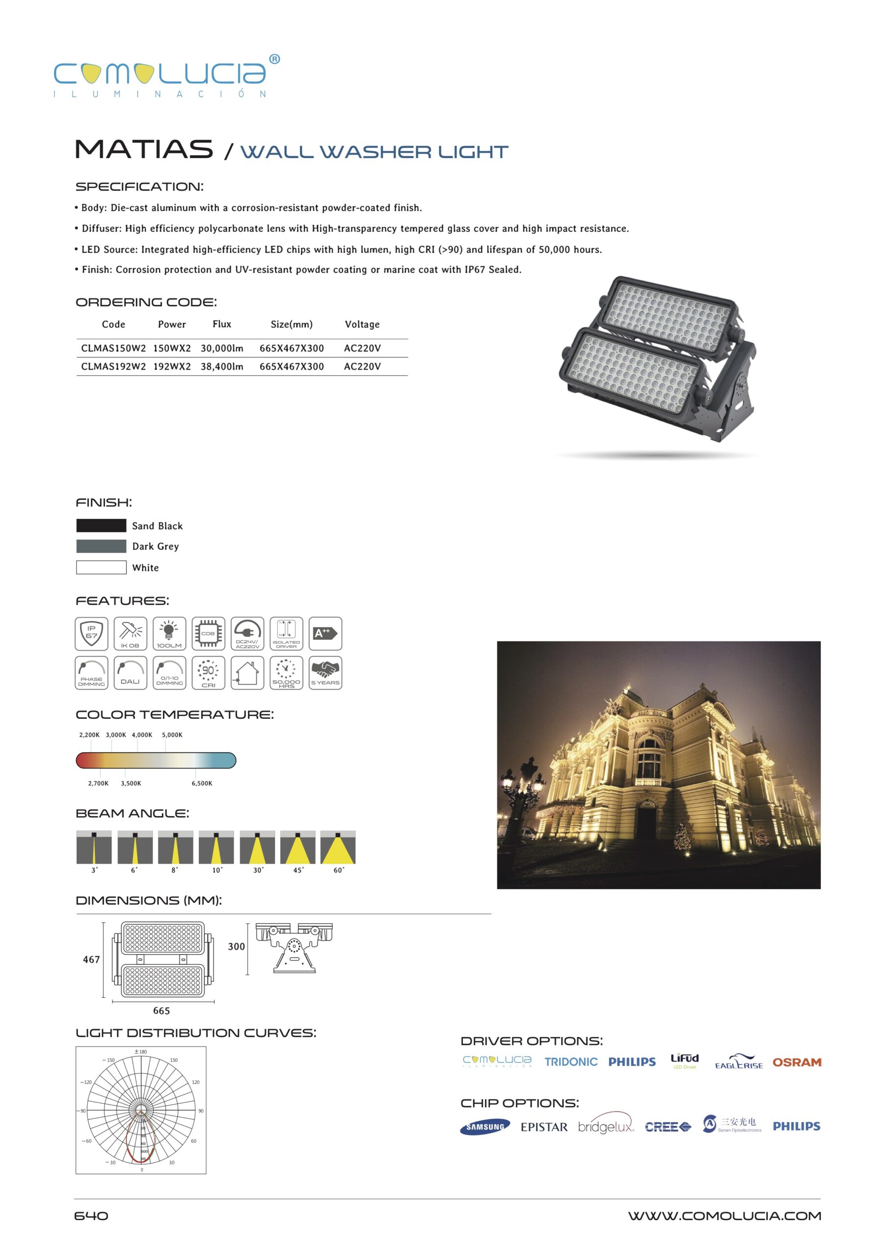 - LED Source: Integrated high-efficiency LED chips with high lumen, high CRI (>90) and lifespan of 50,000 hours.