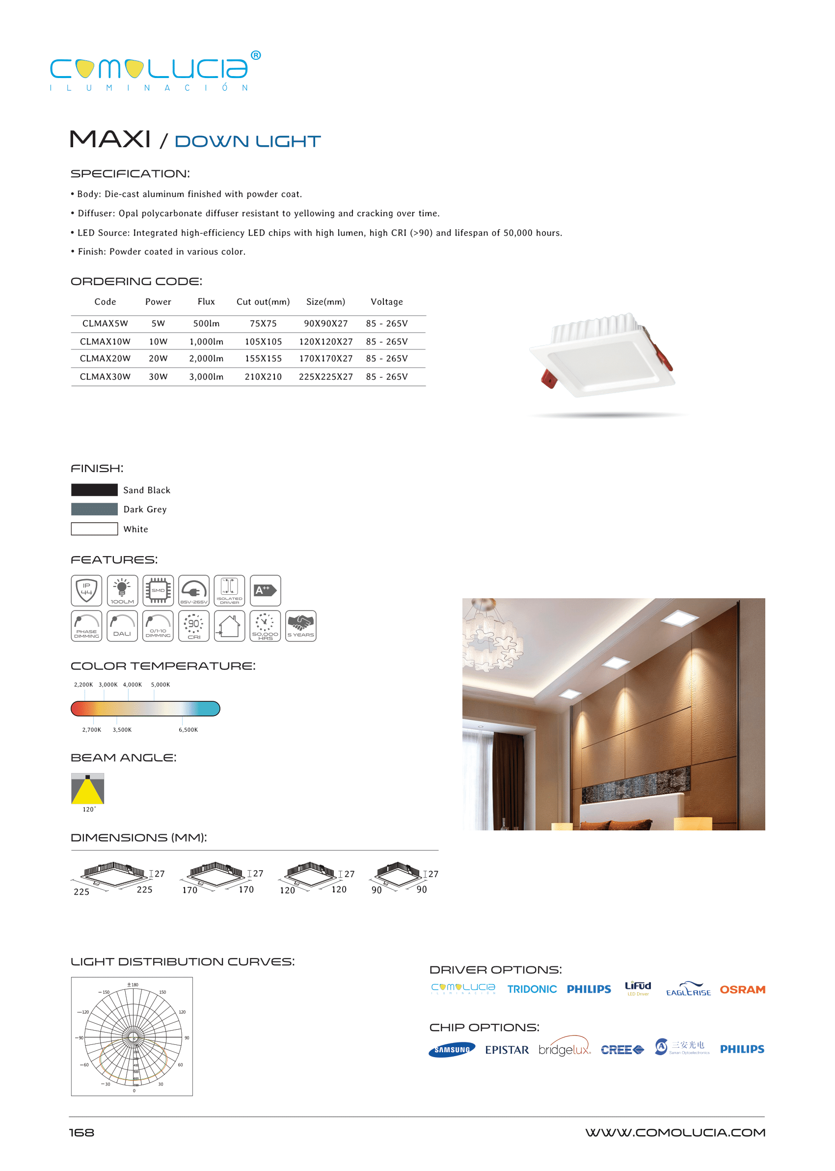 - LED Source: Integrated high-efficiency LED chips with high lumen, high CRI (>90) and lifespan of 50,000 hours.