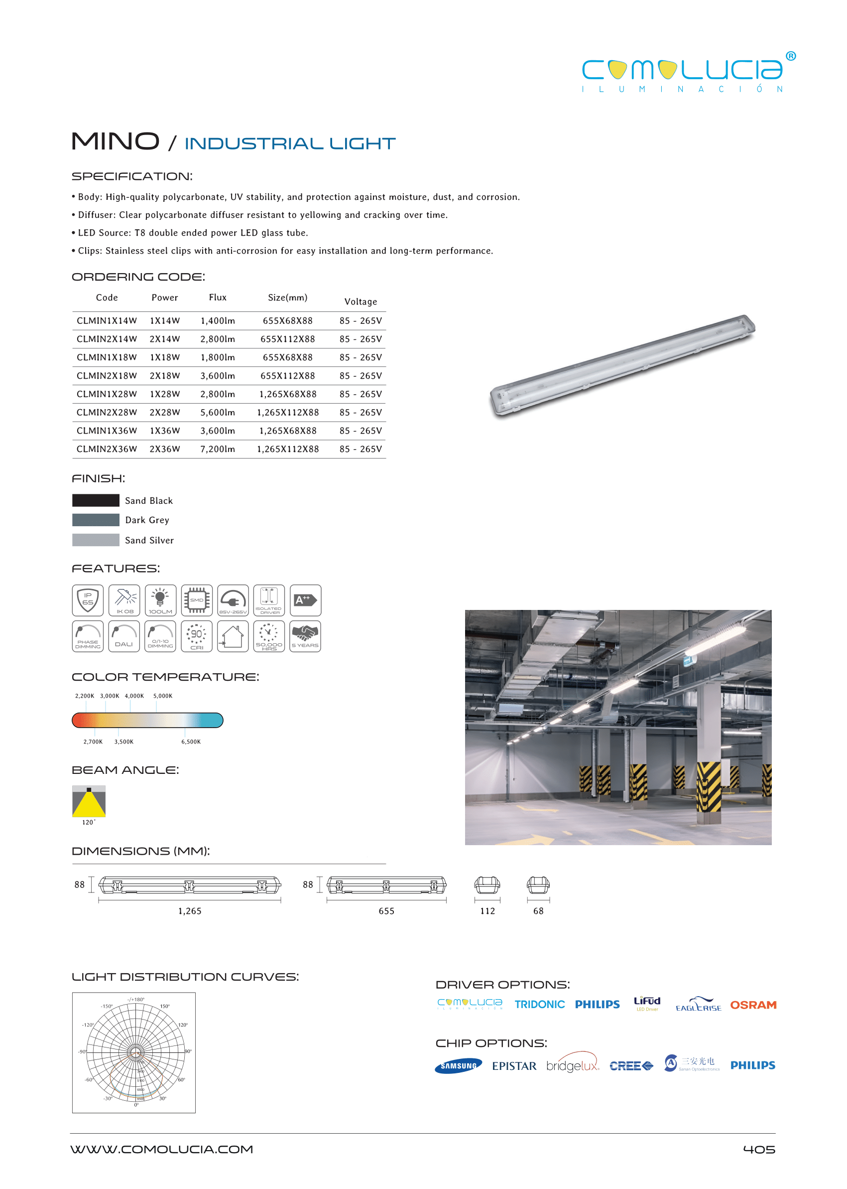 - Diffuser: Clear polycarbonate diffuser resistant to yellowing and crackig over time.