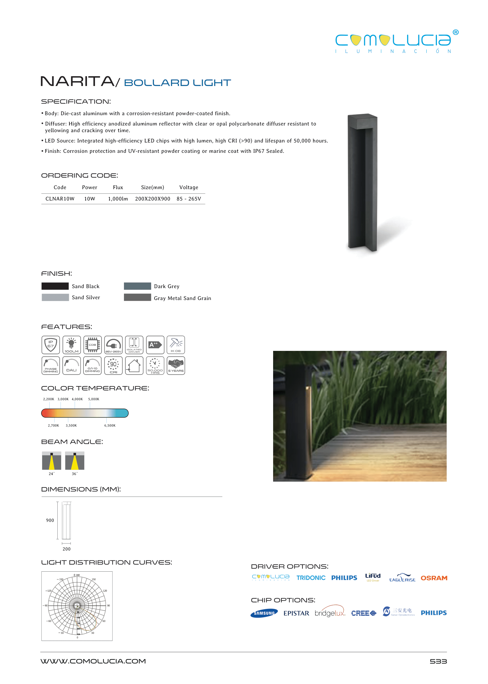 - Finish: Corrosion protection and UV-resistant powder coating or marine coat with IP67 Sealed.