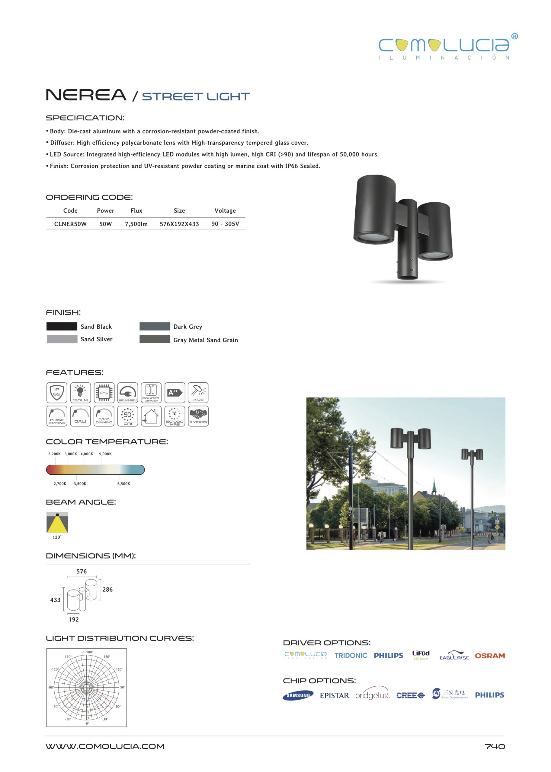 - LED Source: Integrated high-efficiency LED modules with high lumen, high CRI (>90) and lifespan of 50,000 hours.