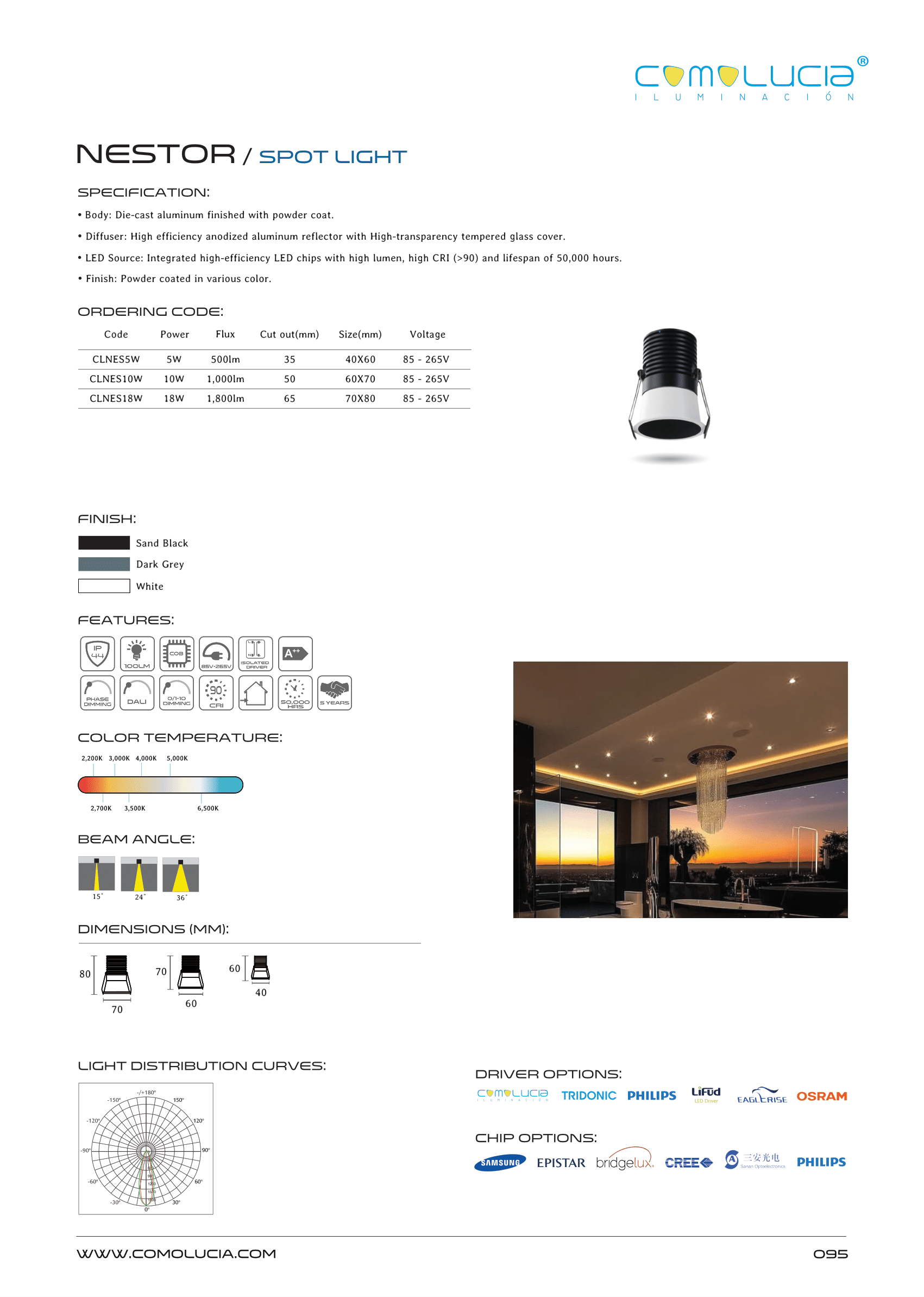 - LED Source: Integrated high-efficiency LED chips with high lumen, high CRI (>90) and lifespan of 50,000 hours.