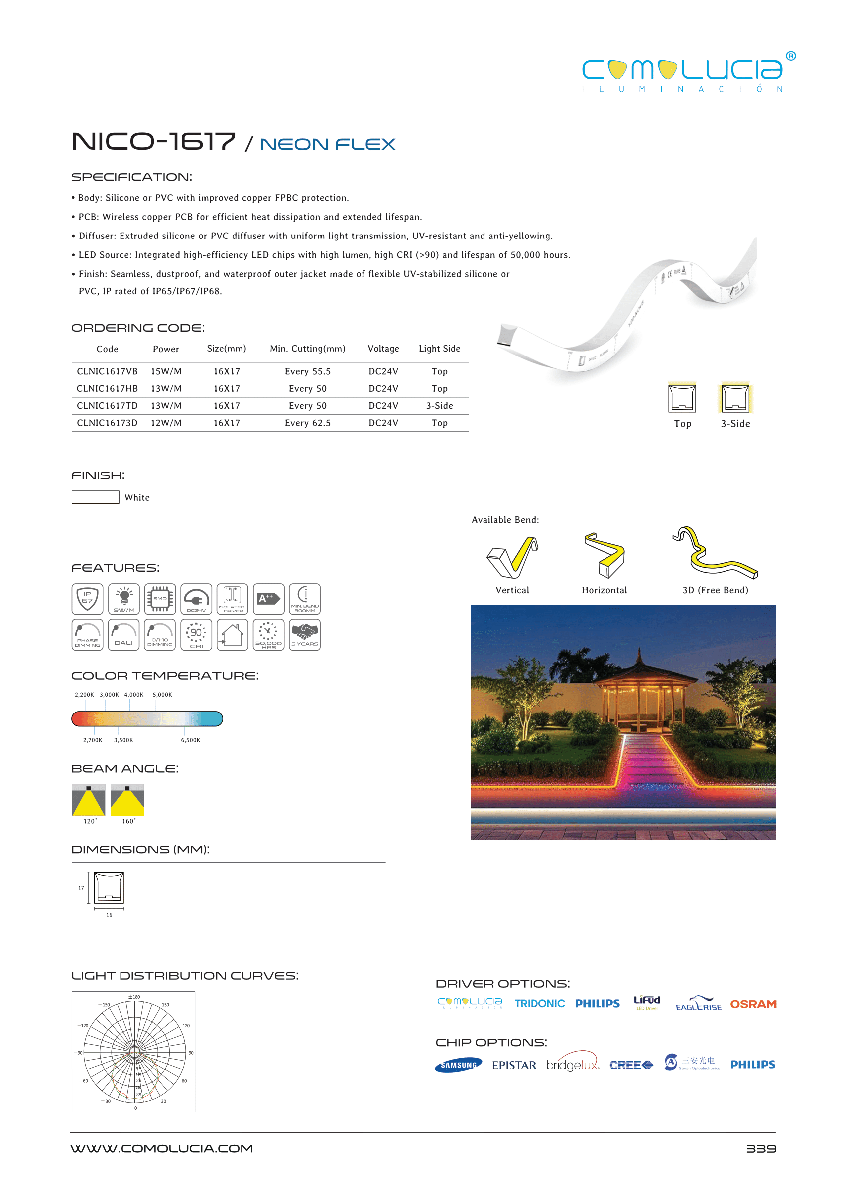 - LED Source: Integrated high-efficiency LED chips with high lumen, high CRI (>90) and lifespan of 50,000 hours.