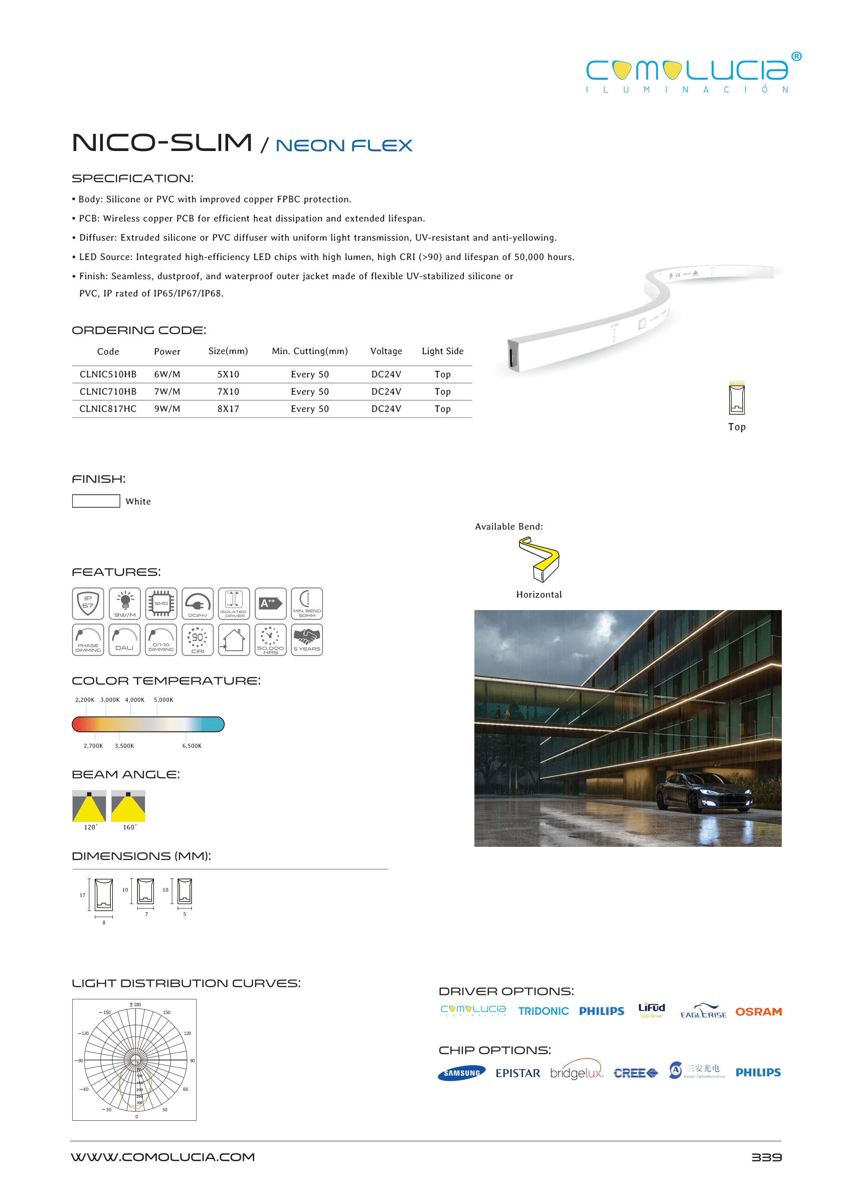 - LED Source: Integrated high-efficiency LED chips with high lumen, high CRI (>90) and lifespan of 50,000 hours.