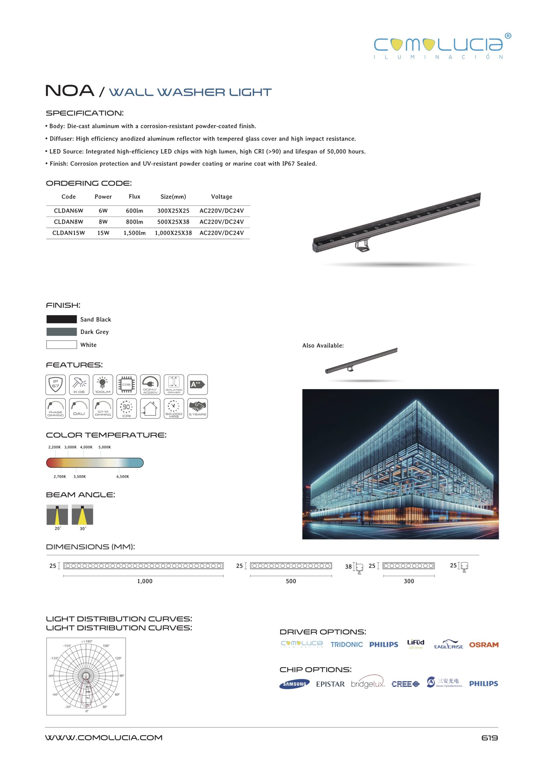 - LED Source: Integrated high-efficiency LED chips with high lumen, high CRI (>90) and lifespan of 50,000 hours.